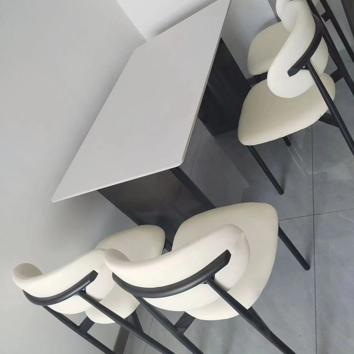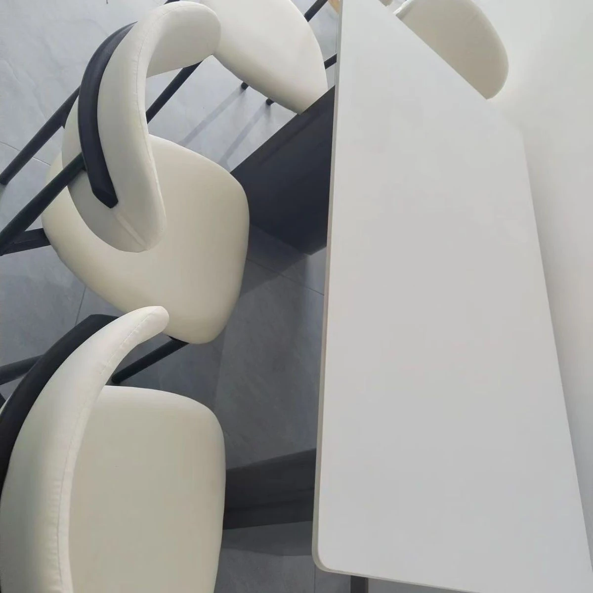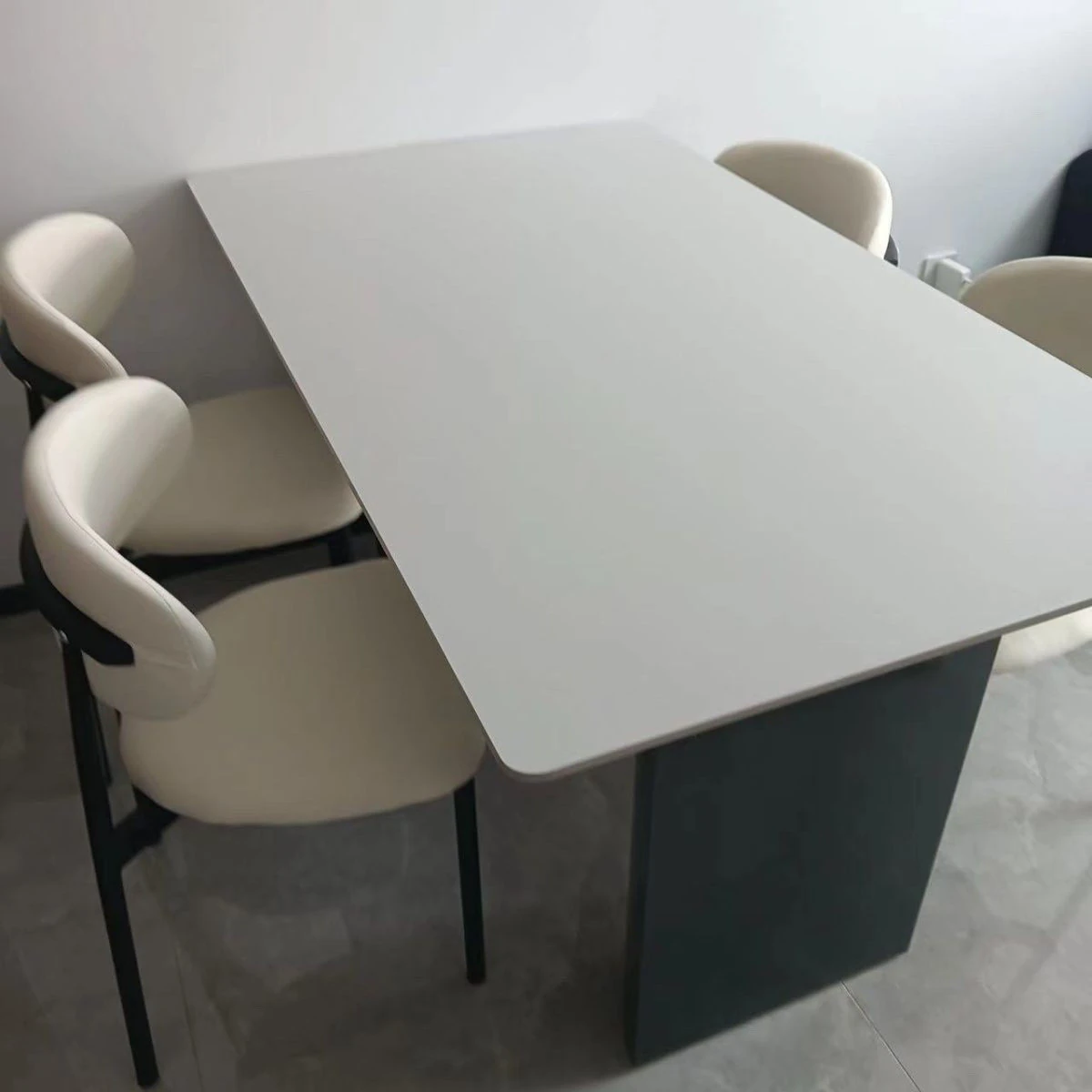 Single table 160*80 [one table and four chairs pure white rock plate metal frame]]