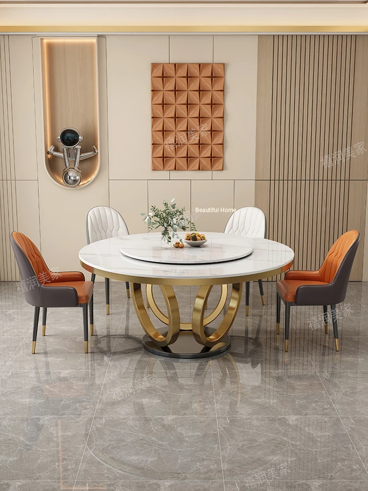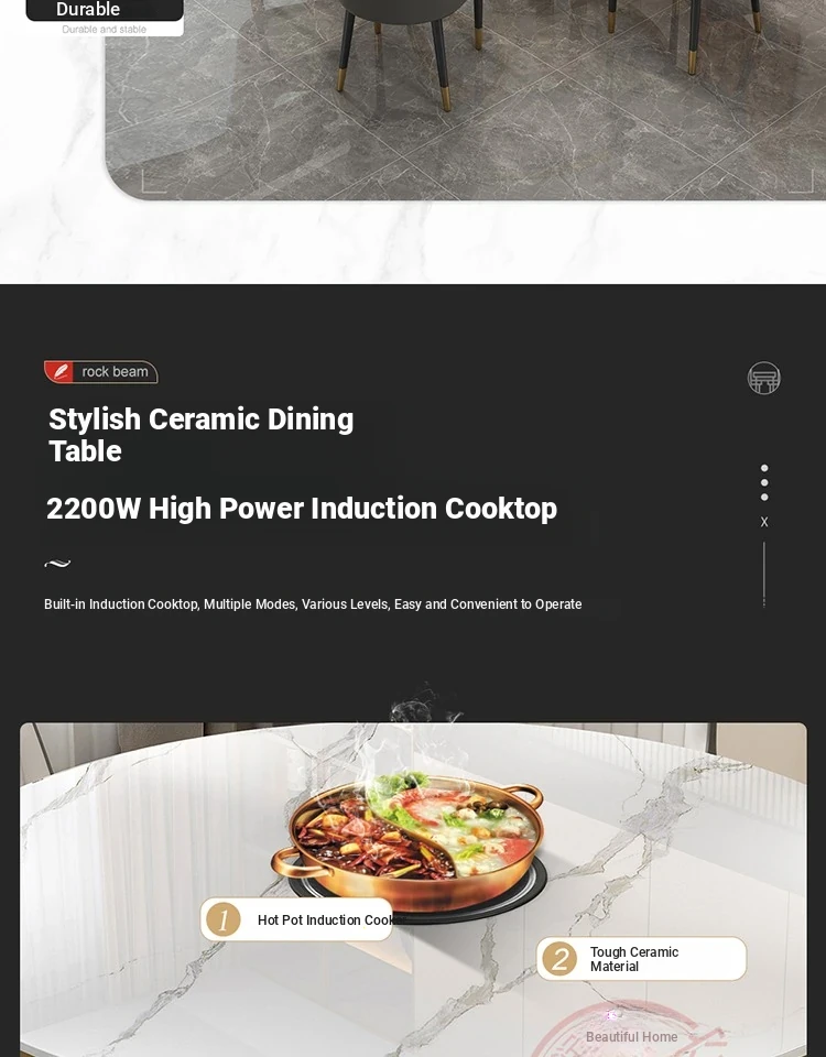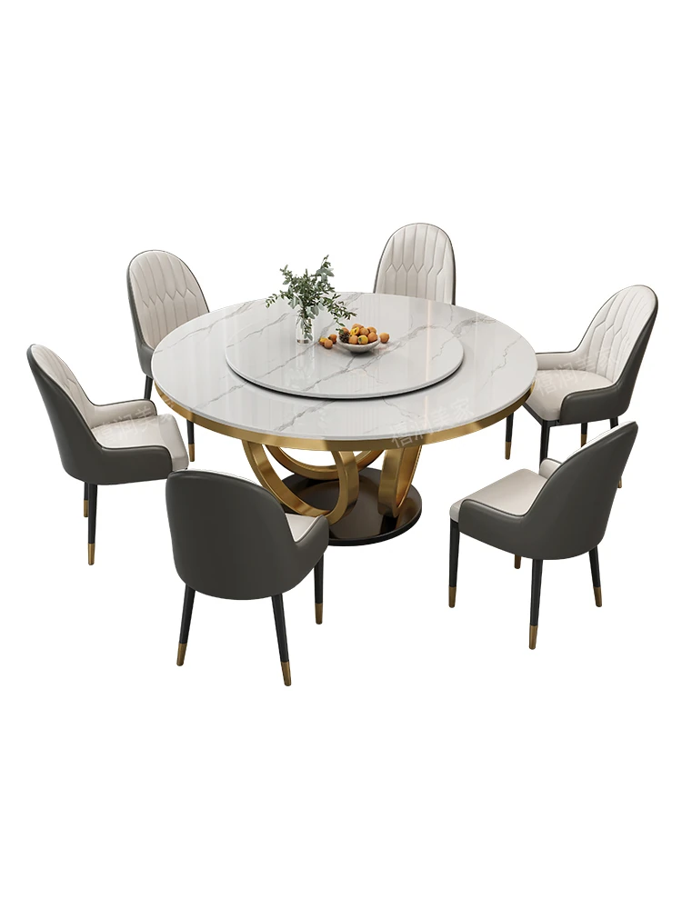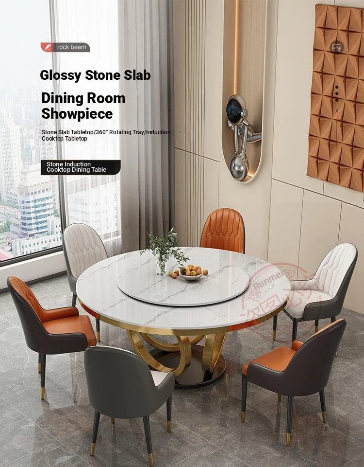 Modern Minimalist Luxury Round Marble Dining Table Set with Chairs for Home - Perfect for Small and Large Spaces, Includes Induction Cooktop