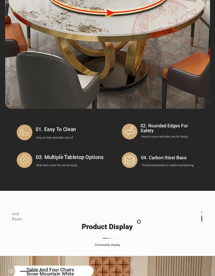 One table +4 chairs + turntable [51.18 in] [thickened rock plate]]