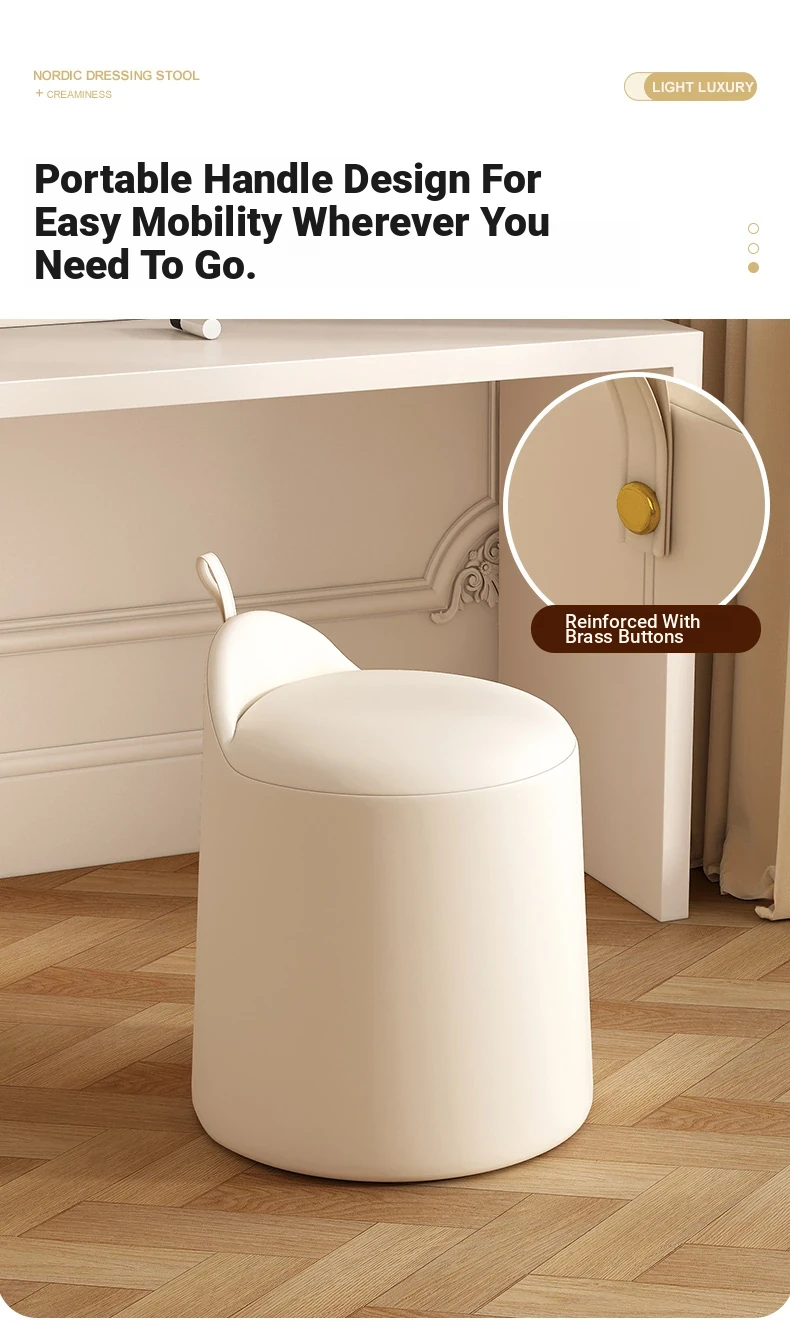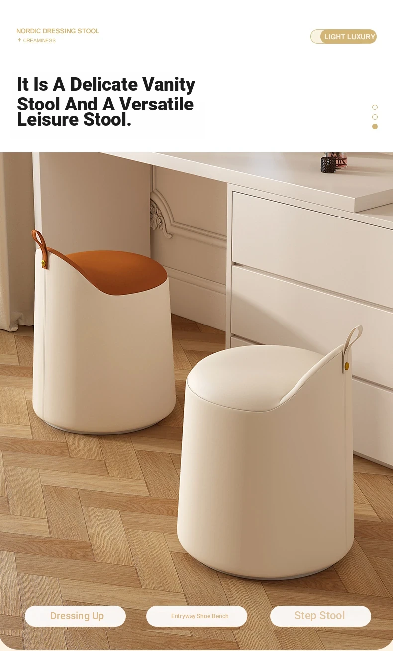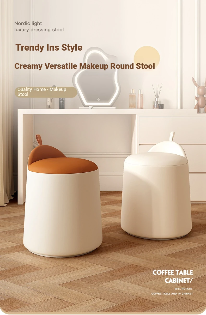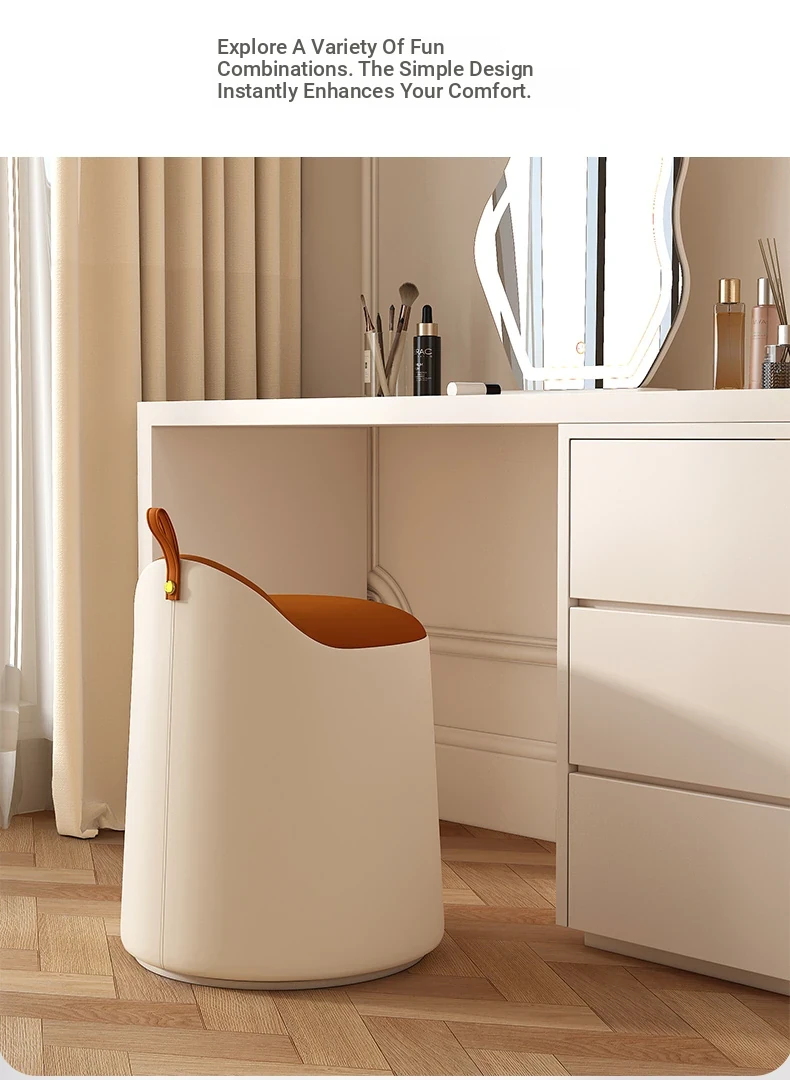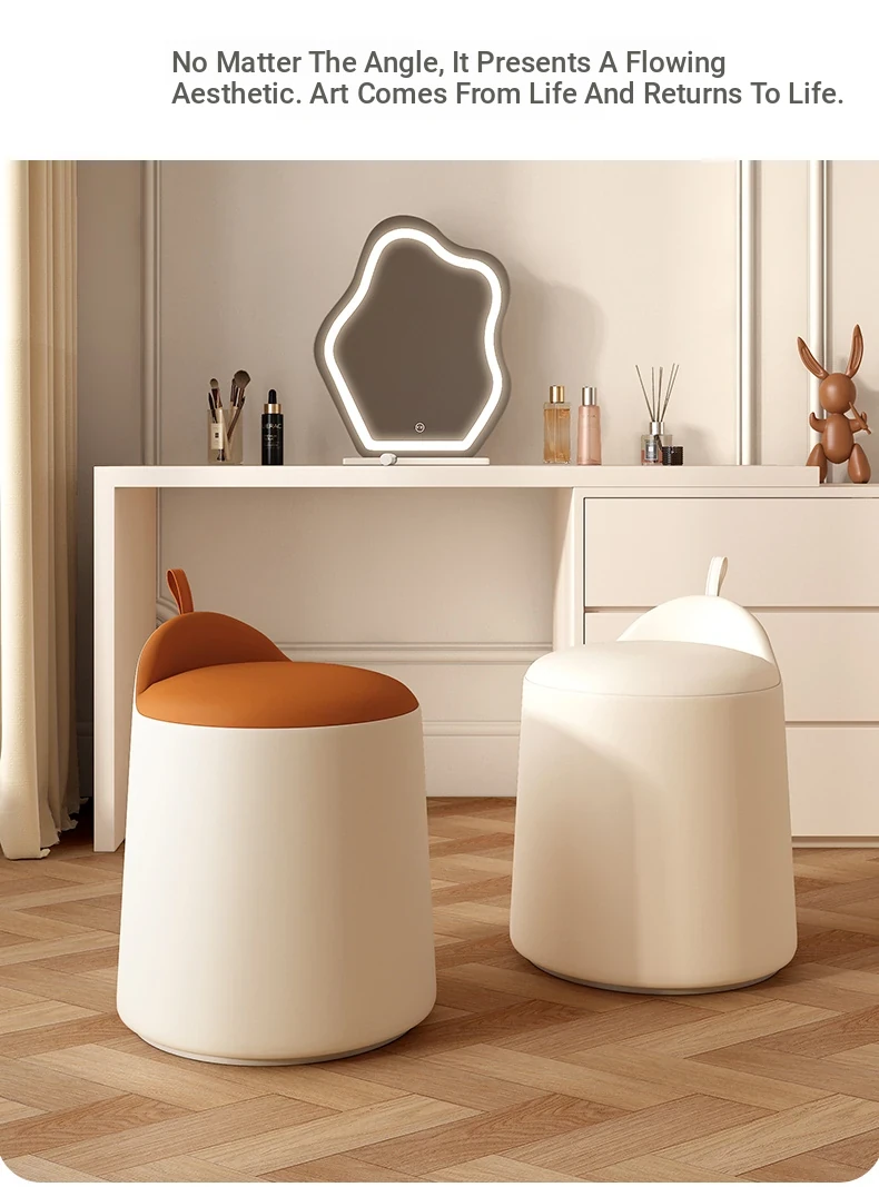 Modern Minimalist Makeup Chair - Trendy Vanity Stool for Girls' Bedrooms, Creamy Aesthetic, Portable Design, Perfect for Nail Art and Glam Beauty Sessions!