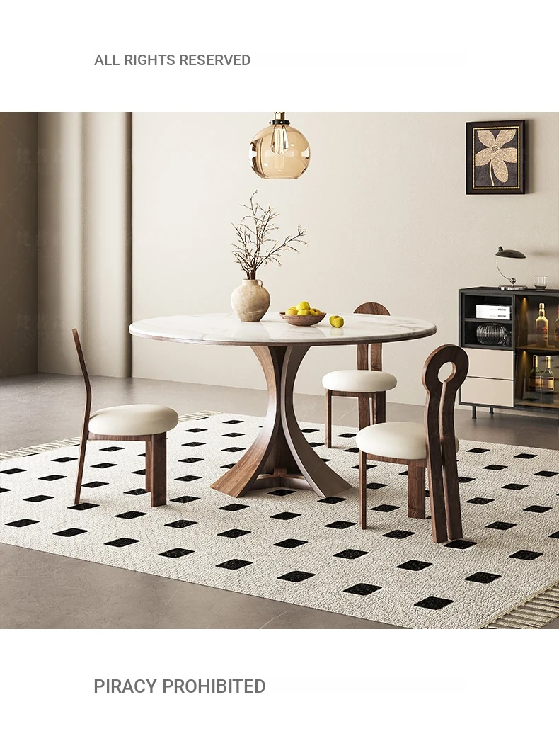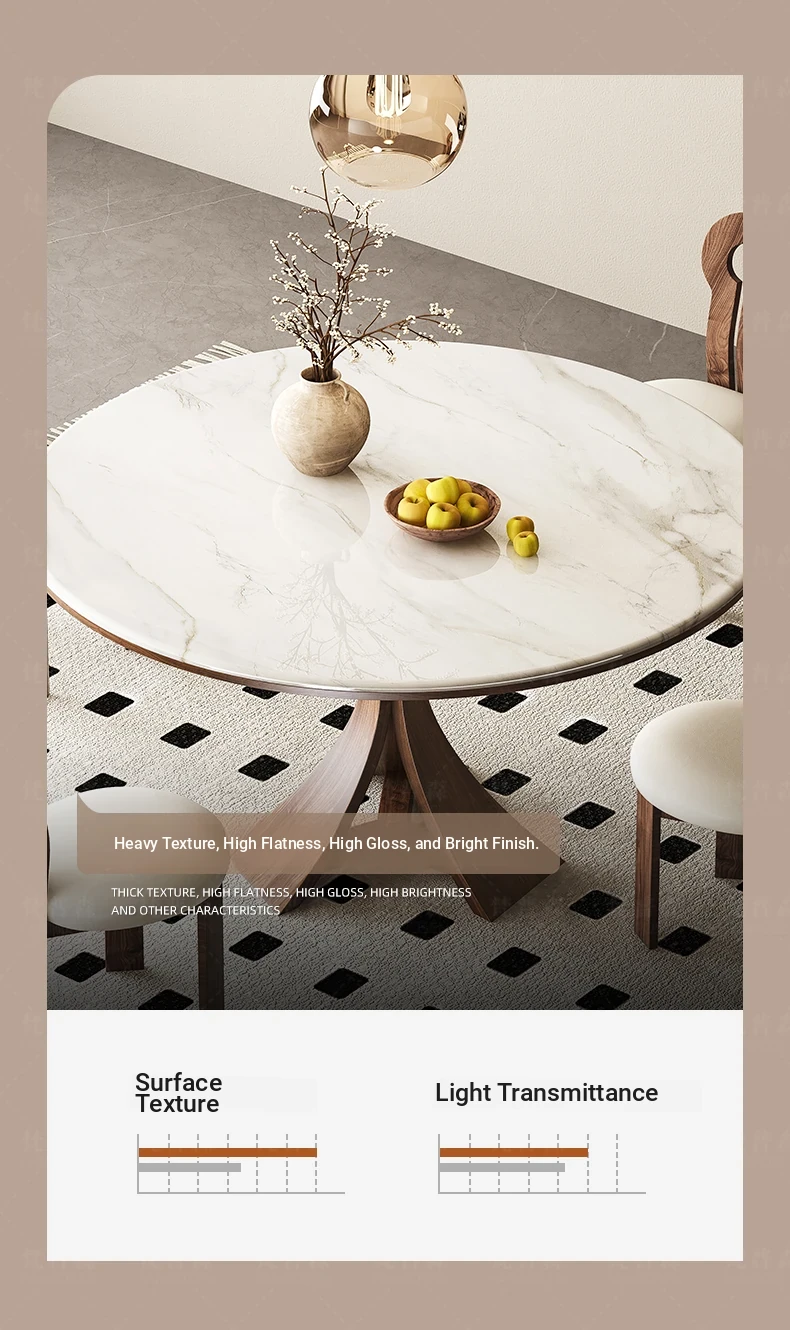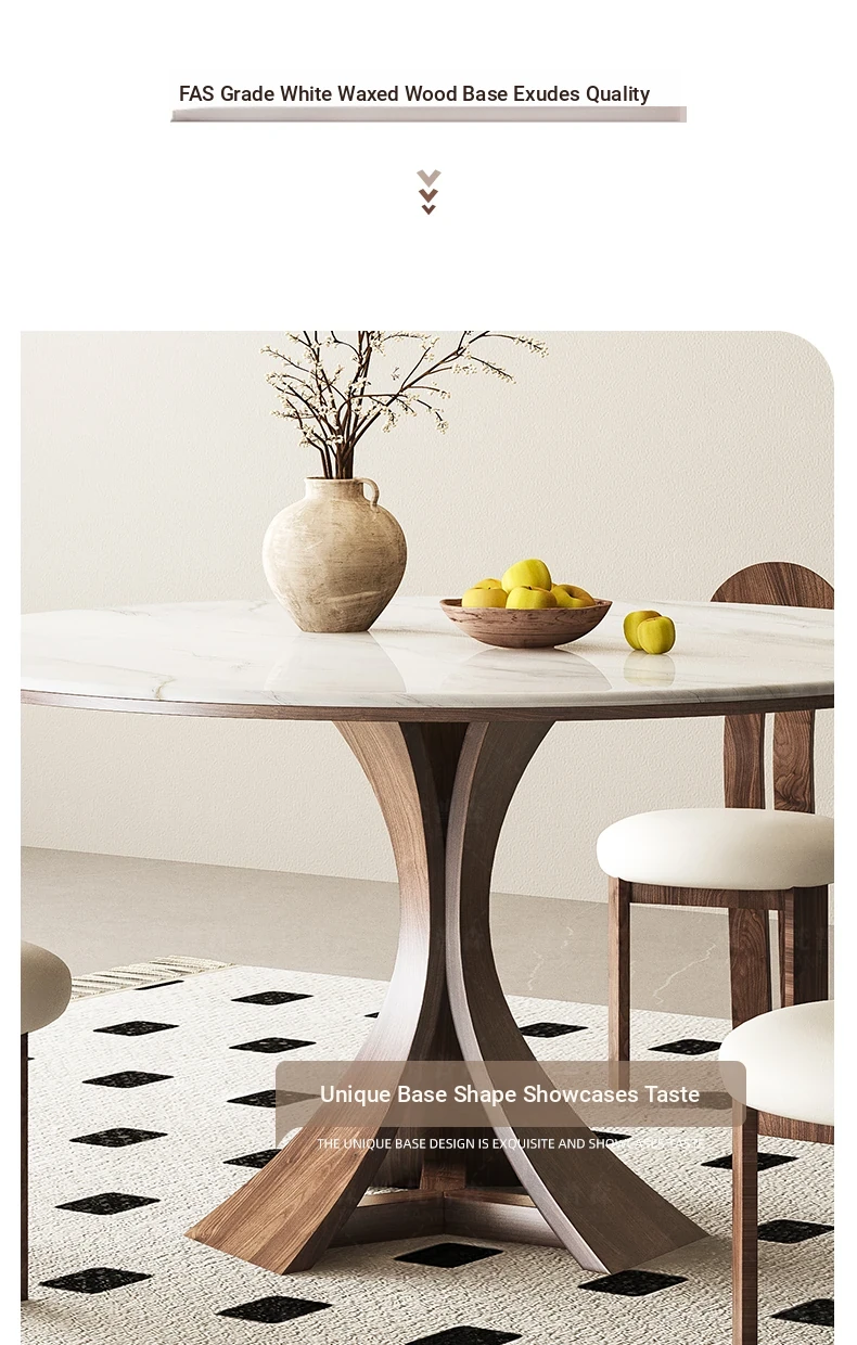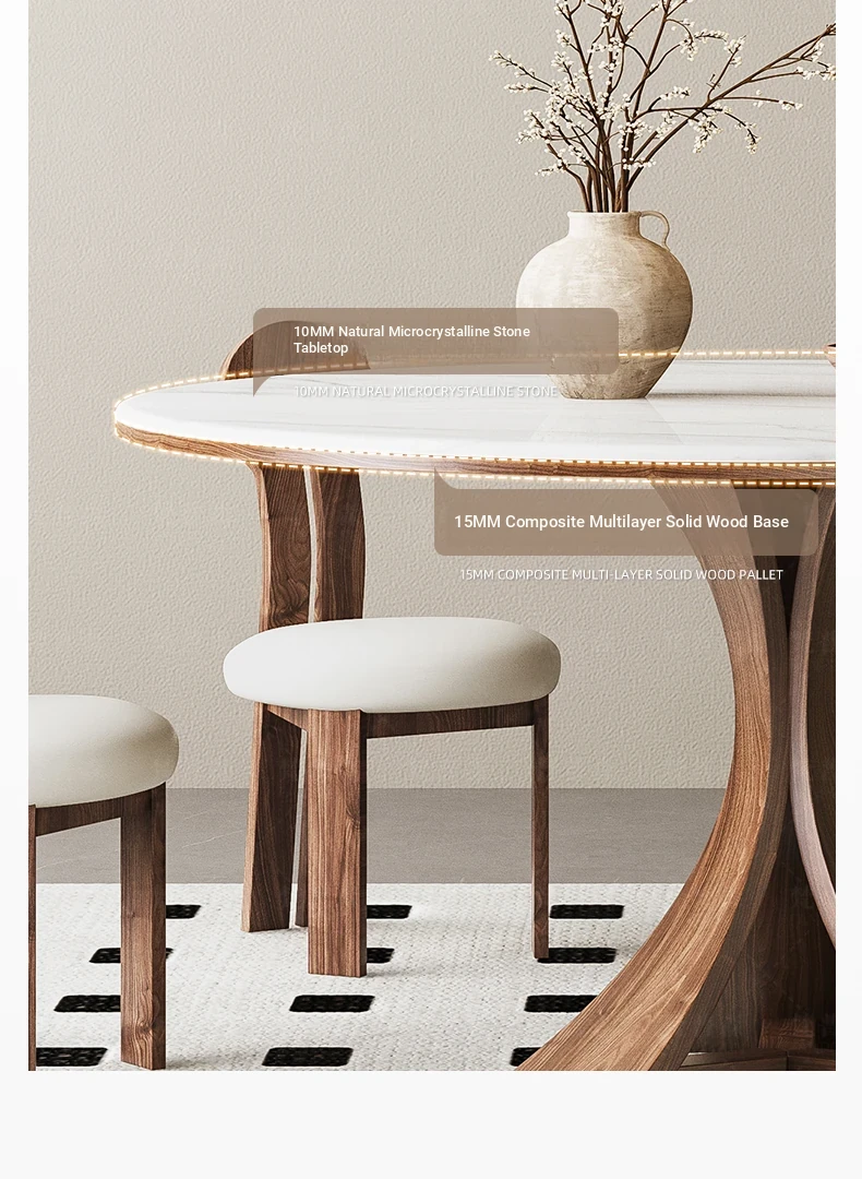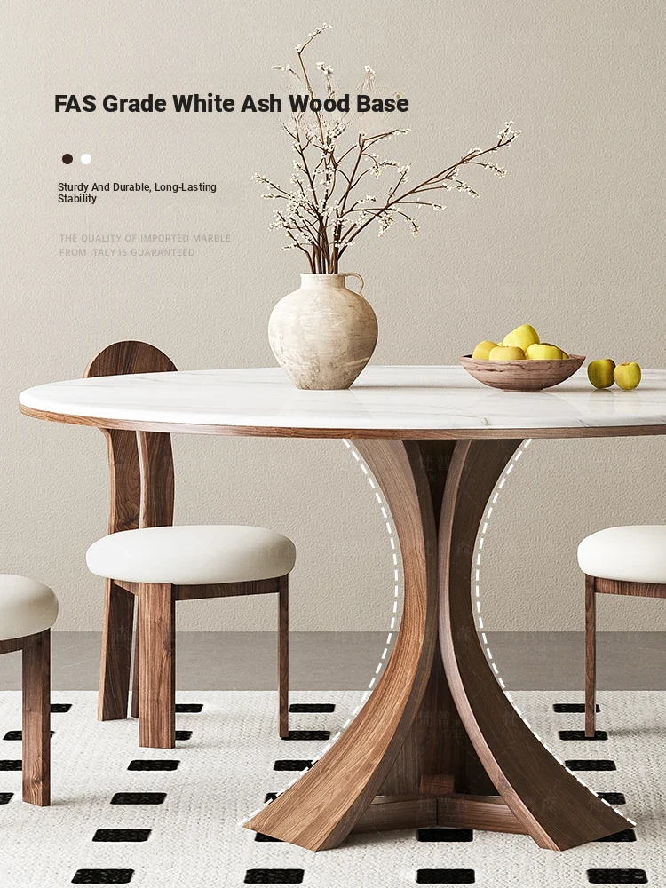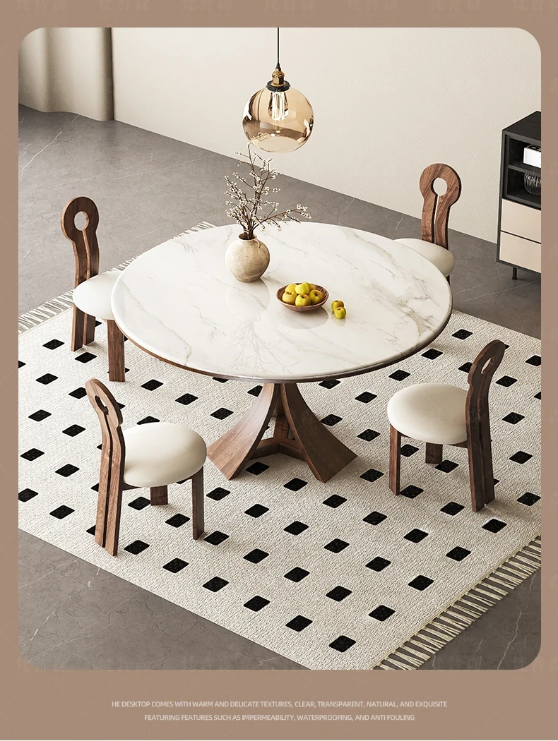 Modern Minimalist Marble and Solid Wood Round Dining Table Set with Chairs - Perfect for Small Spaces, Elegant Microcrystalline Stone Design, Ideal for Home Use