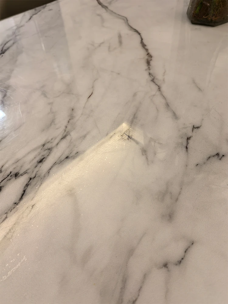 [Gao Ding] 55.12 in Natural Microlite Dining Table + Cat Scratch Leather Dining Chair * 6