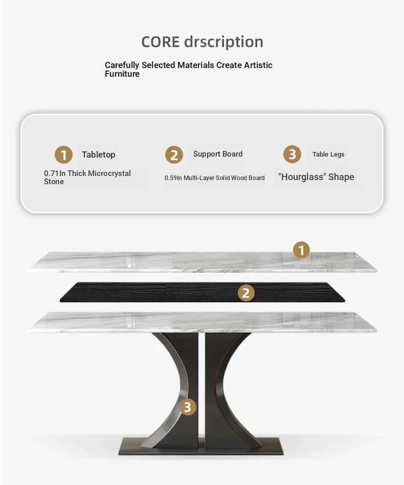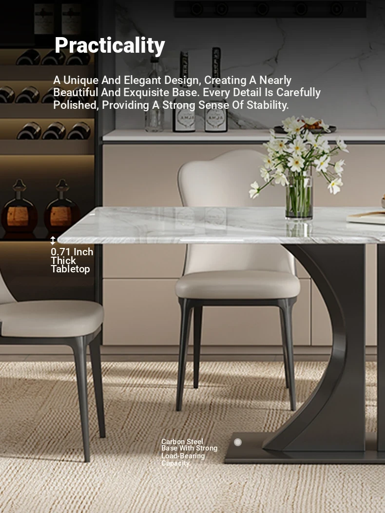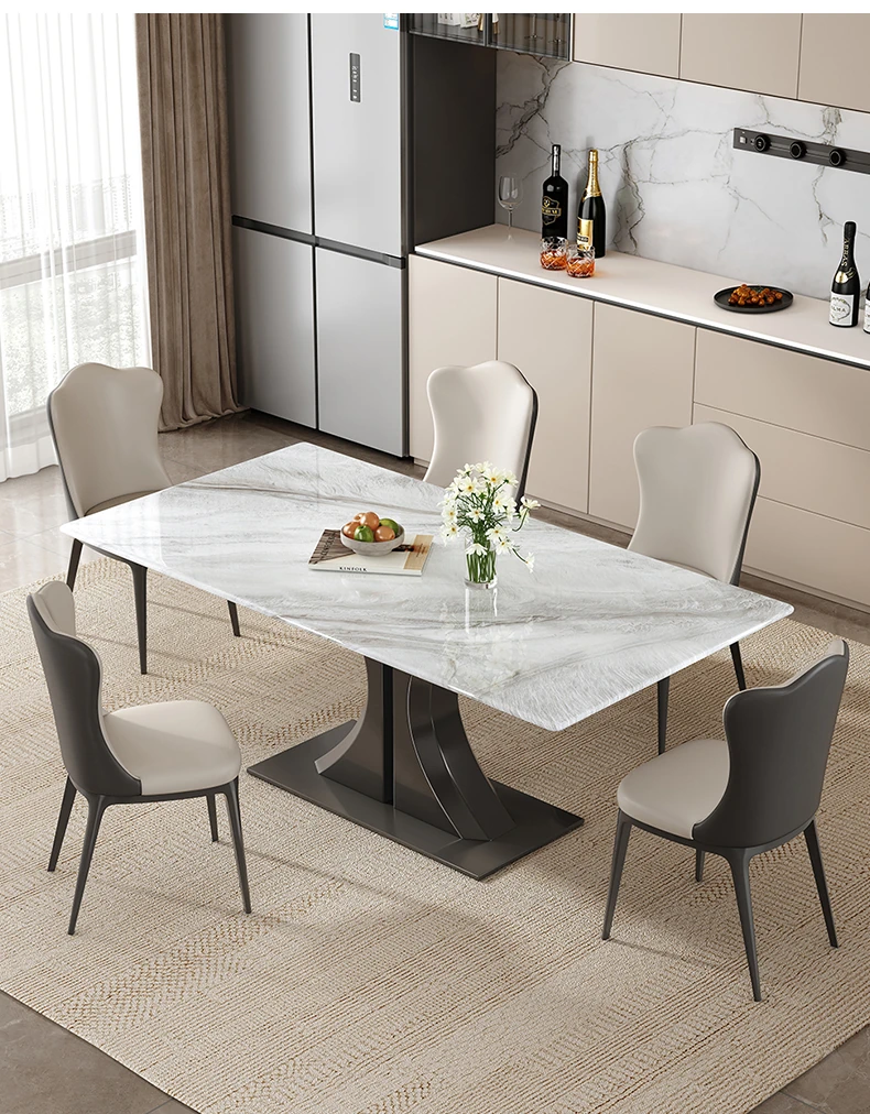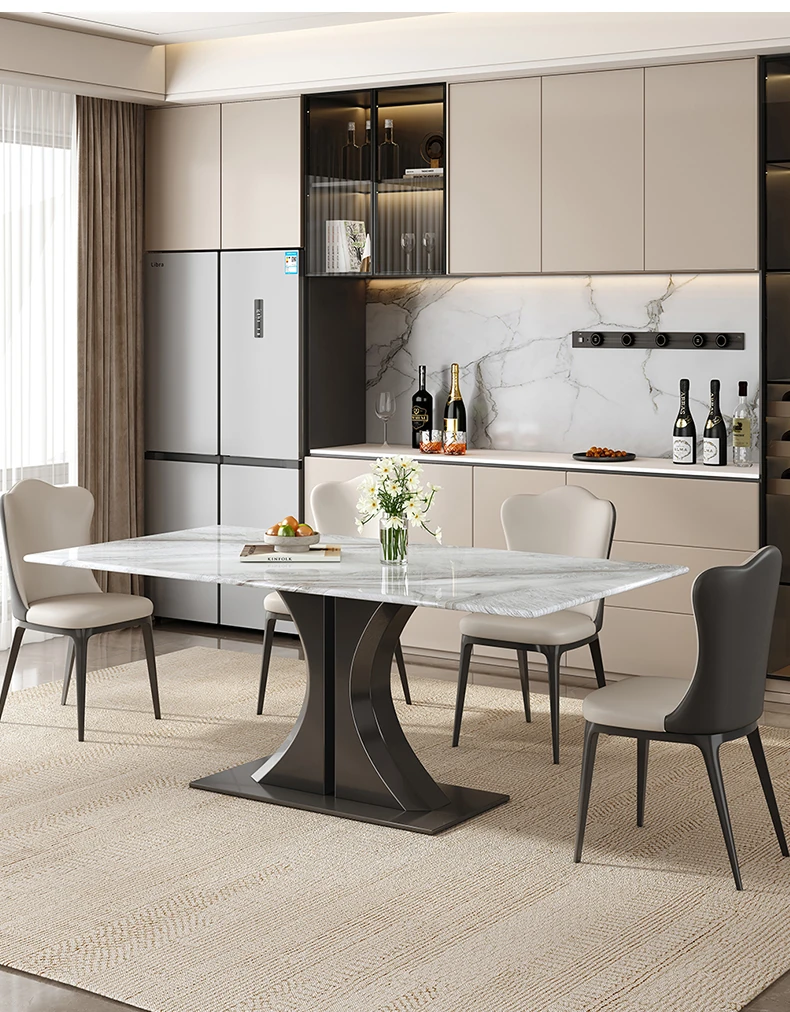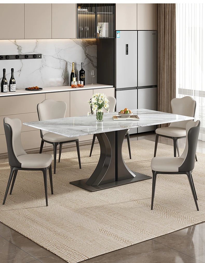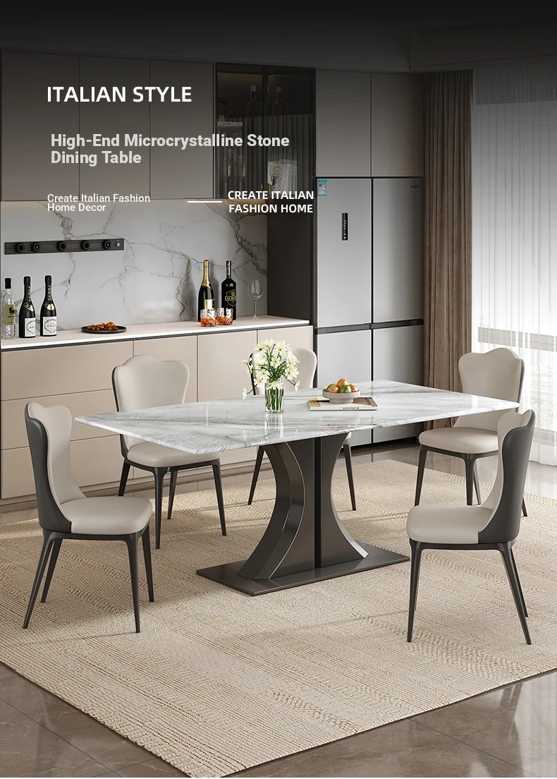 Modern Minimalist Rectangular Dining Table and Chair Set - Natural Microcrystalline Stone with Marble Finish for High-End Italian Dining Experience at Home