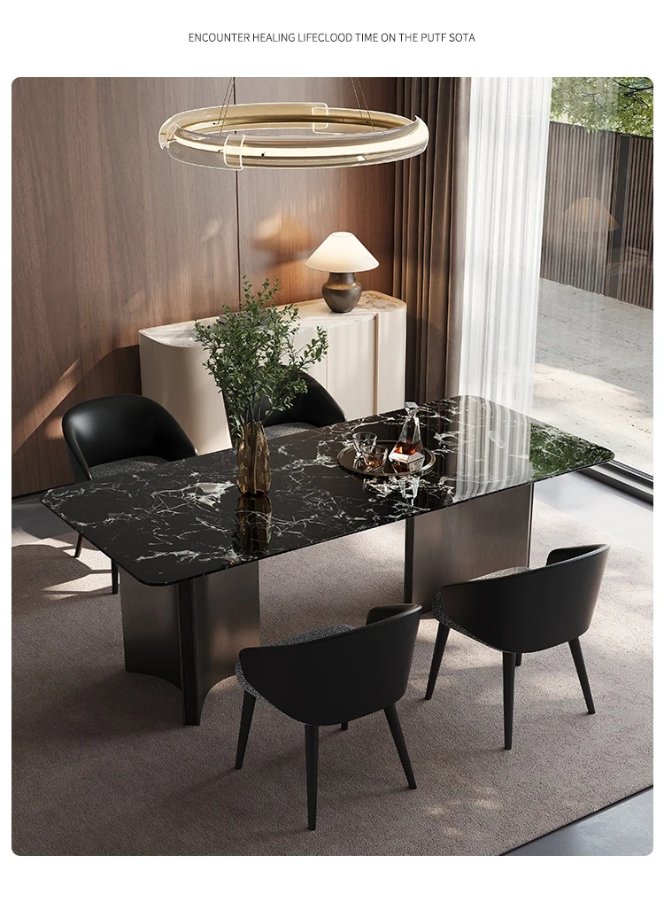 Modern Minimalist Rectangular Dining Table Set with Elegant Marble Finish – Perfect for Small Spaces and Chic Dining Experiences