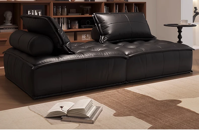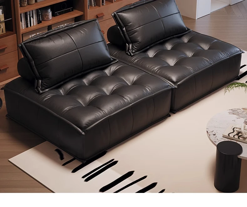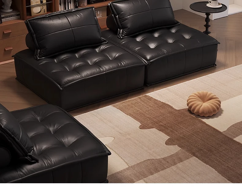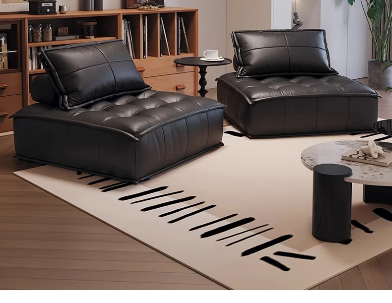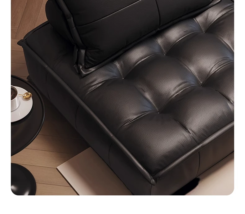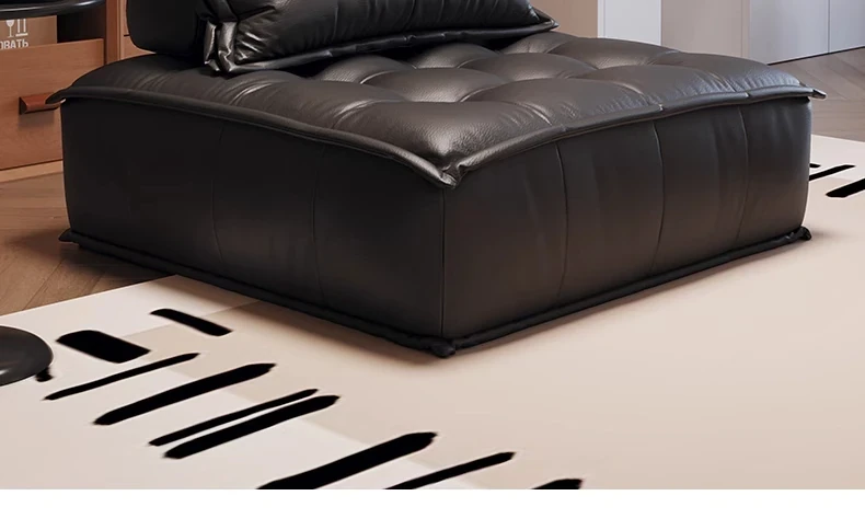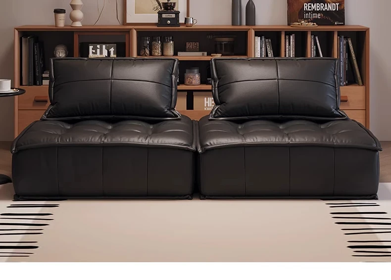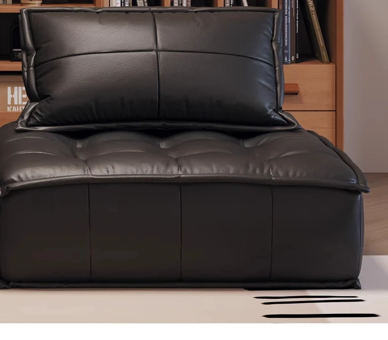 Modular Black Leather Sofa for Living Room - Piedmont Style Single Square Tofu Block Sofa, Perfect for Small Spaces, Genuine Leather Combination