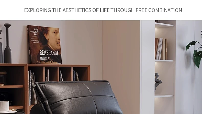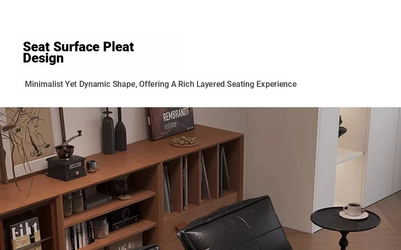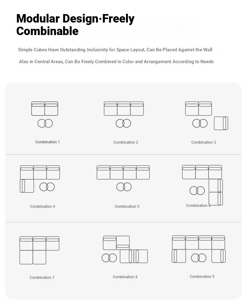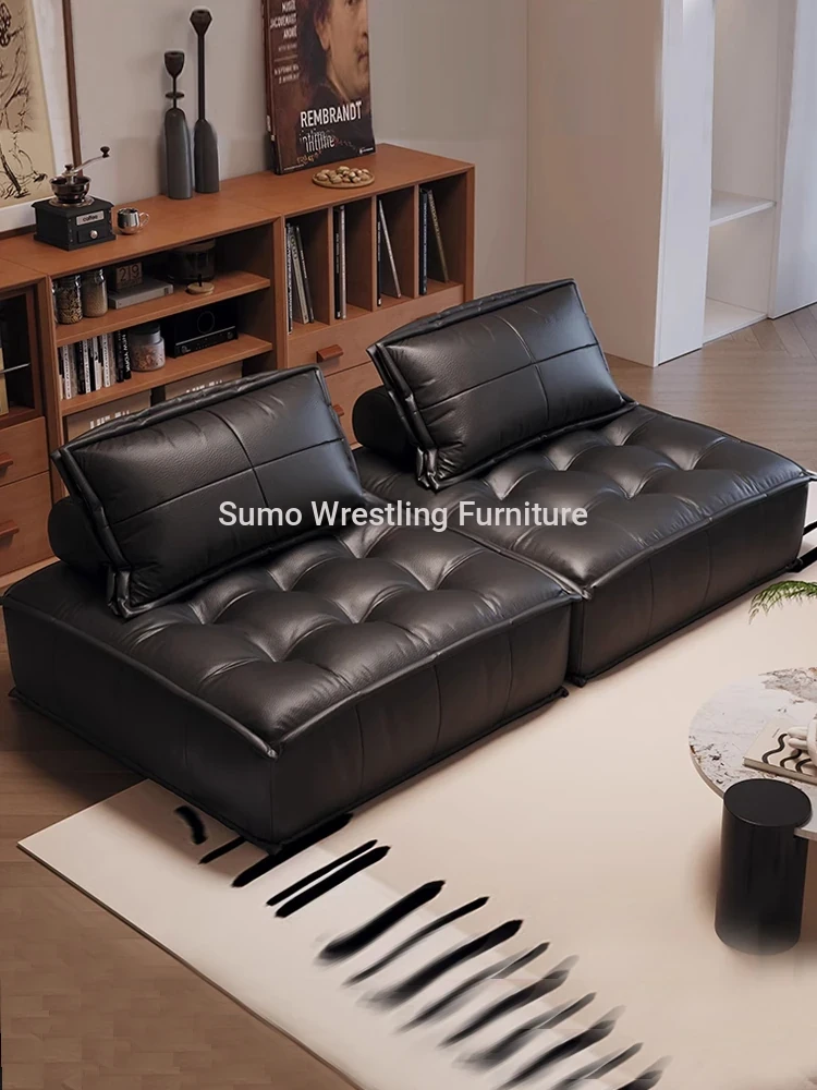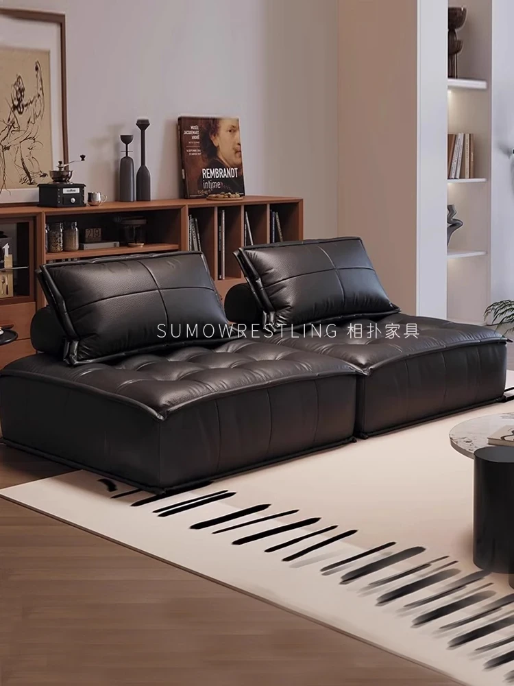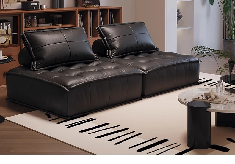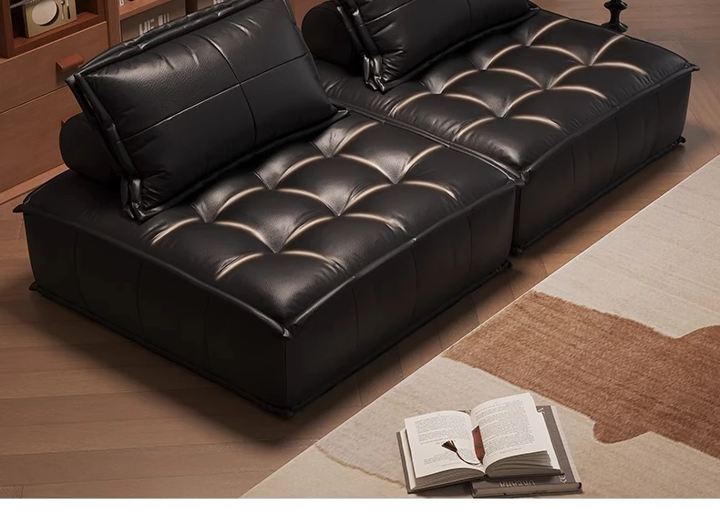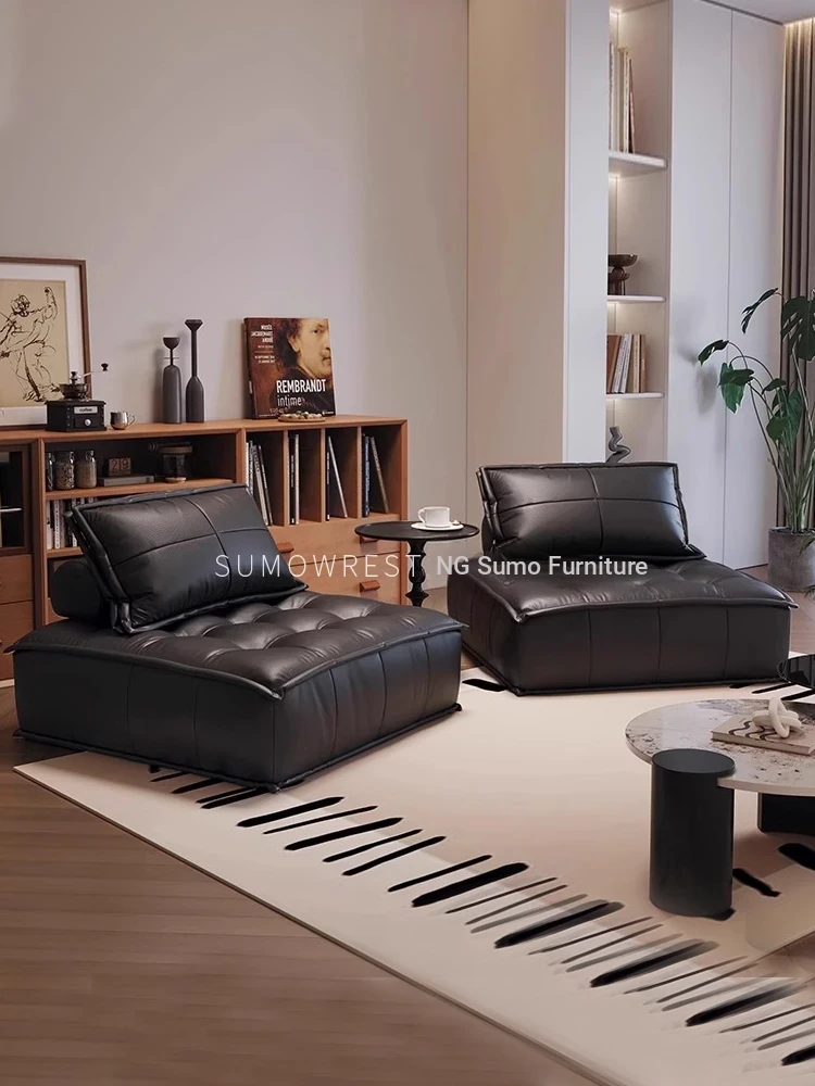 Modular Black Leather Sofa for Living Room - Piedmont Style Single Square Tofu Block Sofa, Perfect for Small Spaces, Genuine Leather Combination