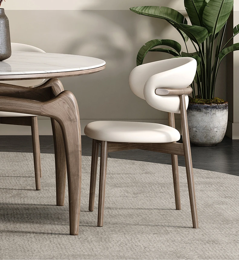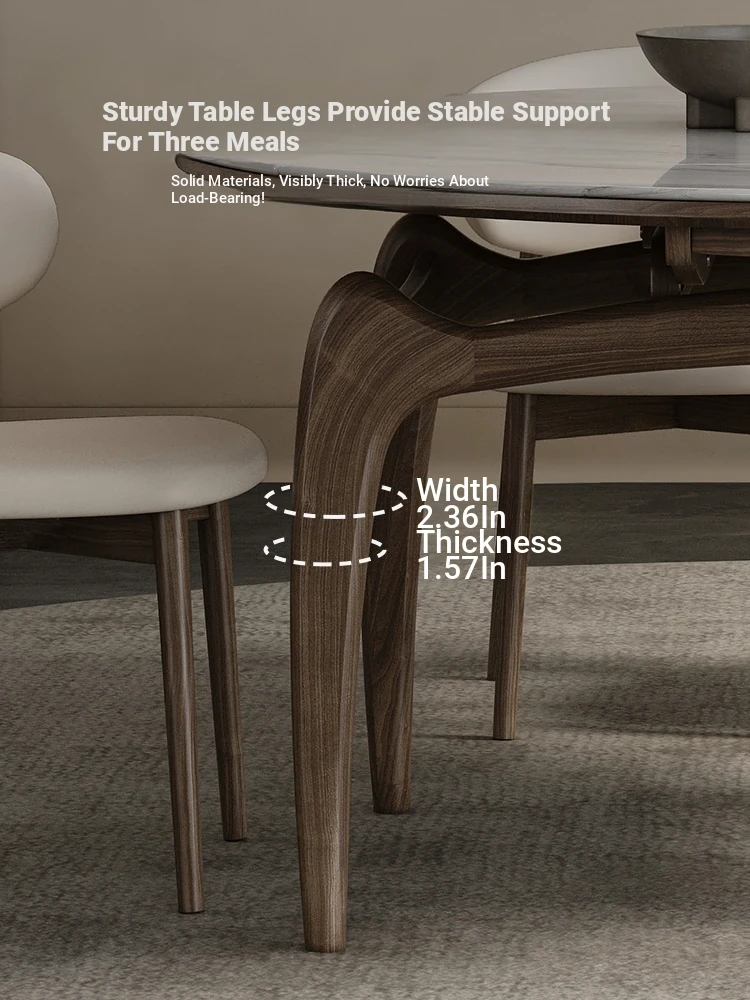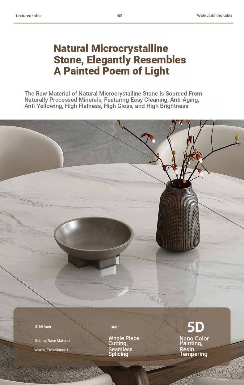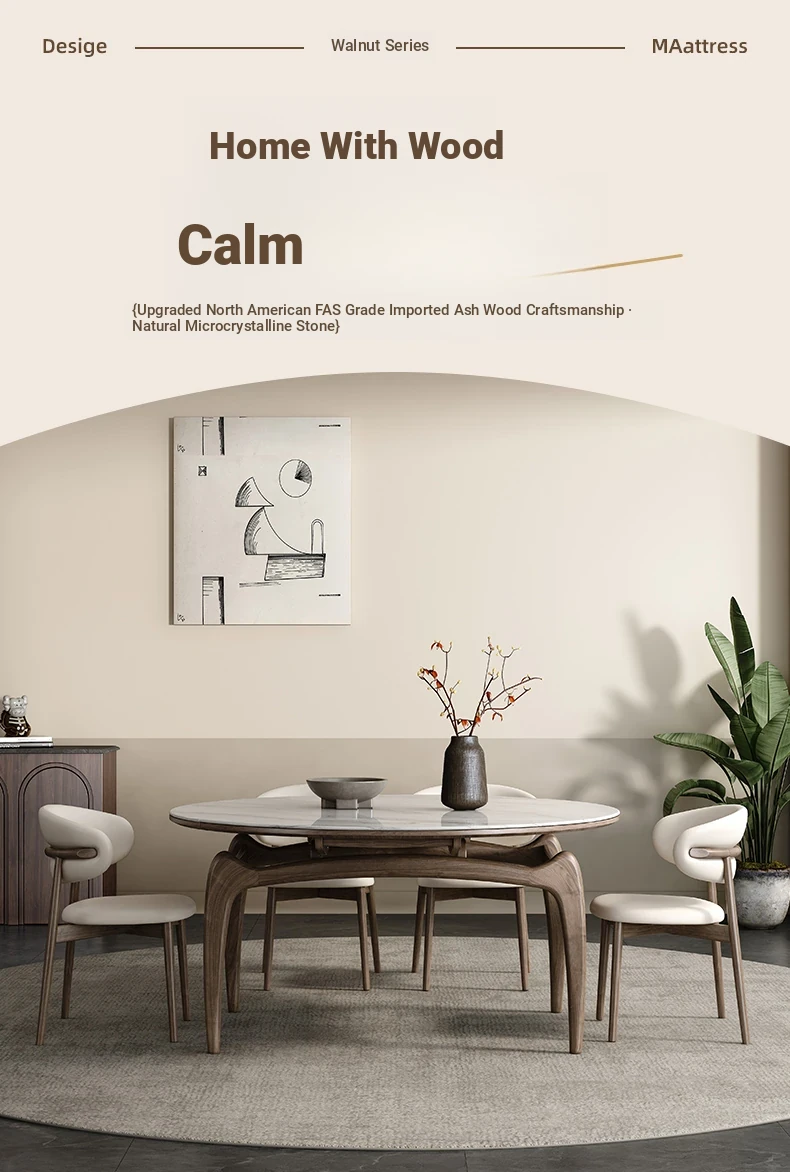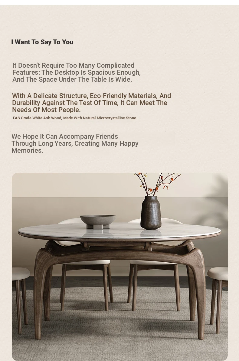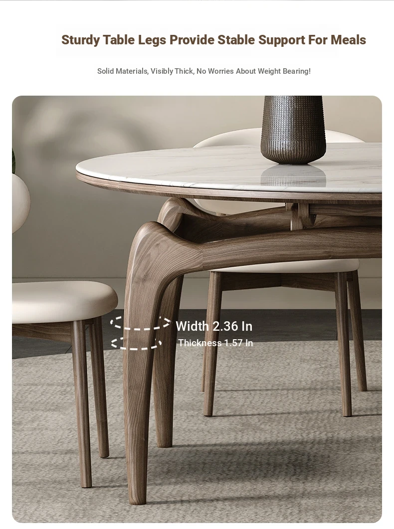Natural Marble Expandable Solid Wood Dining Table - New Vintage Style Round Table with Light Luxury Microcrystalline Stone Dining Chair Set