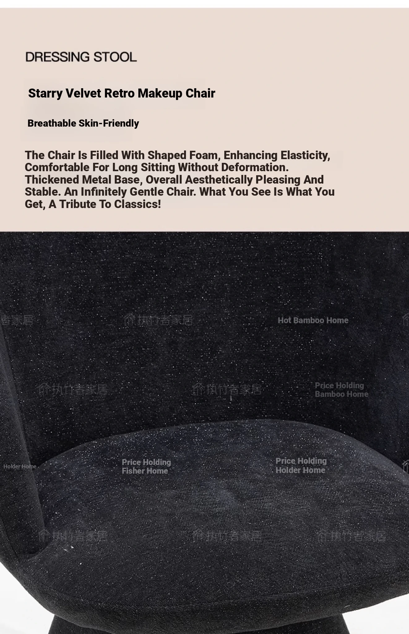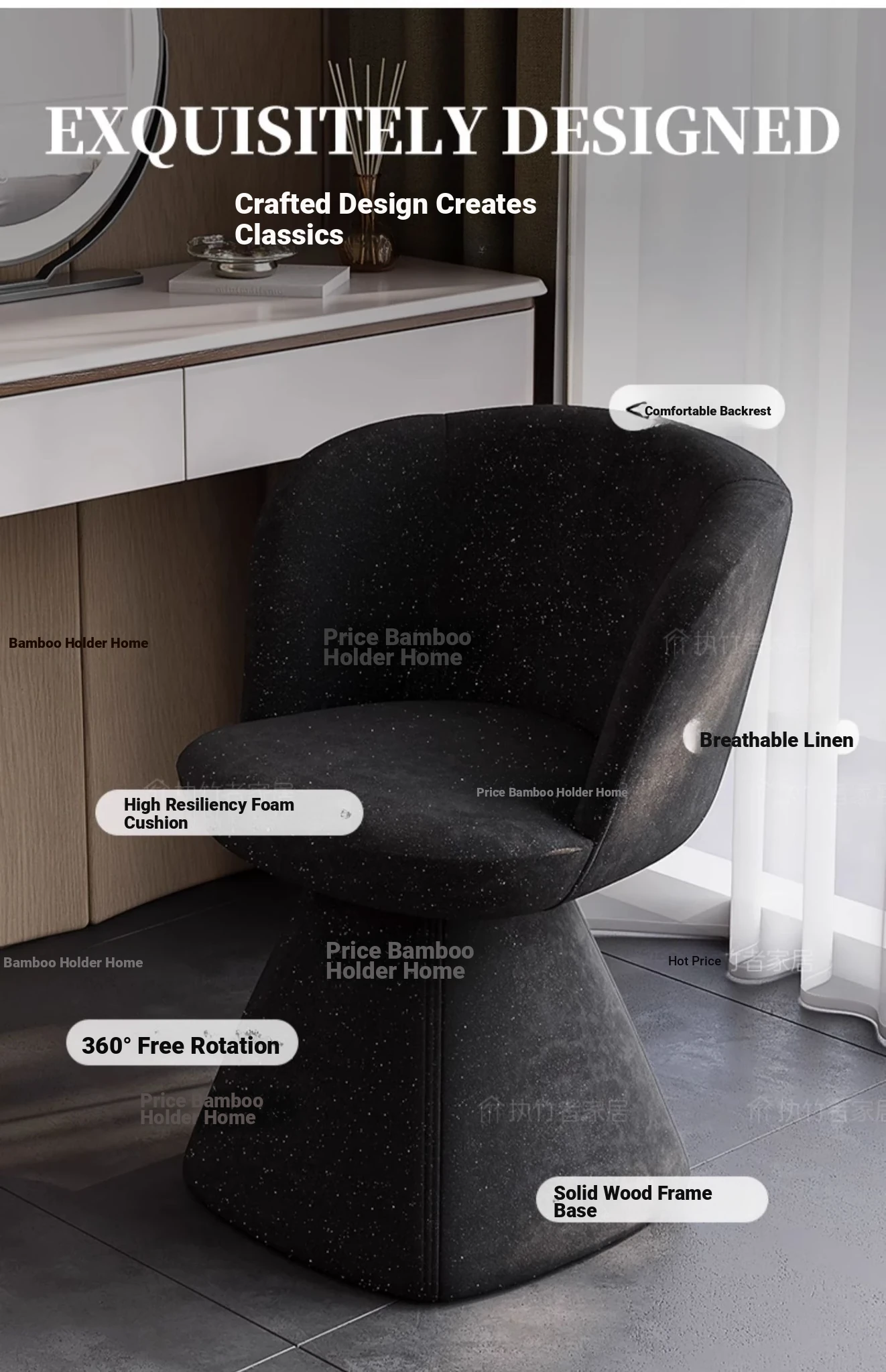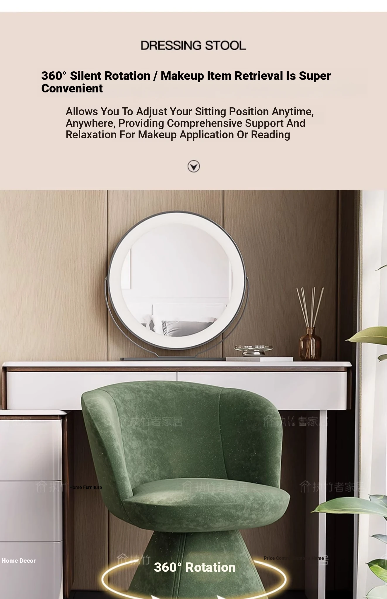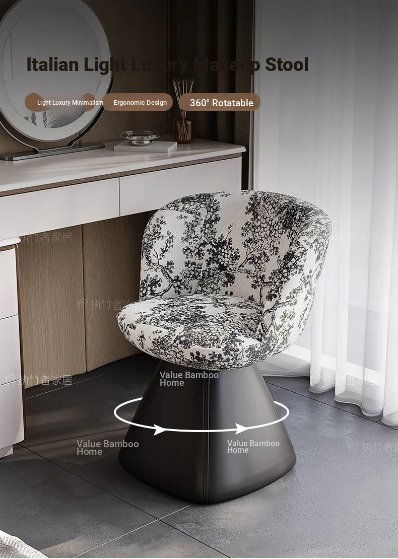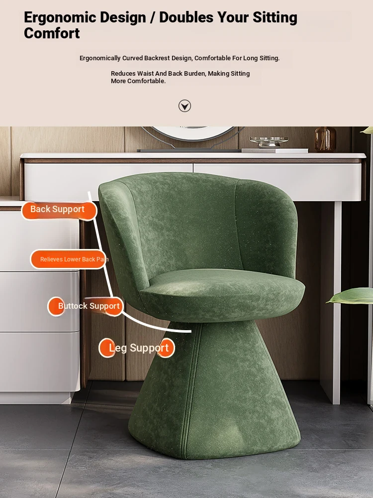 Nordic Luxury Makeup Chair with Rotatable Backrest - Elegant Dressing Stool for Bedroom Vanity, Perfect for Home Use