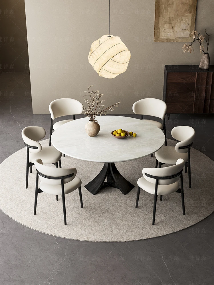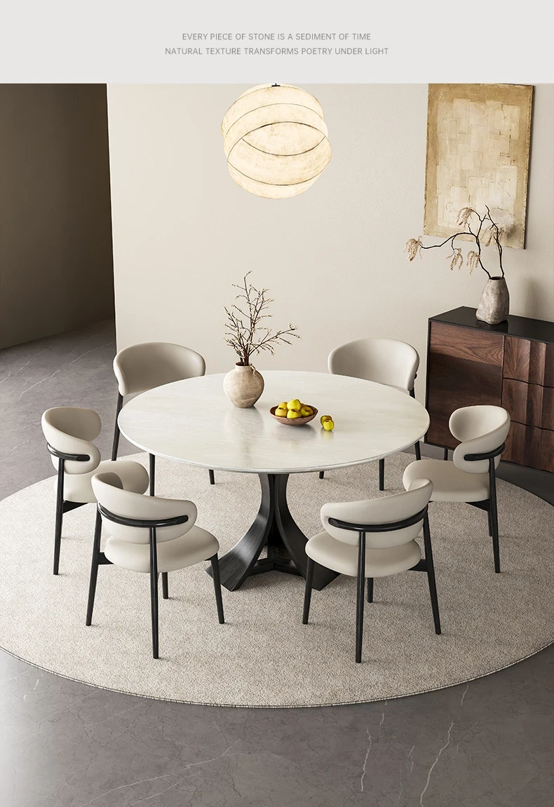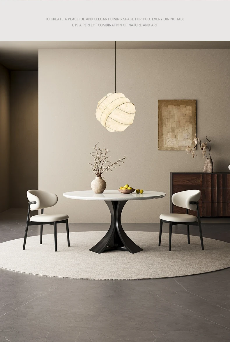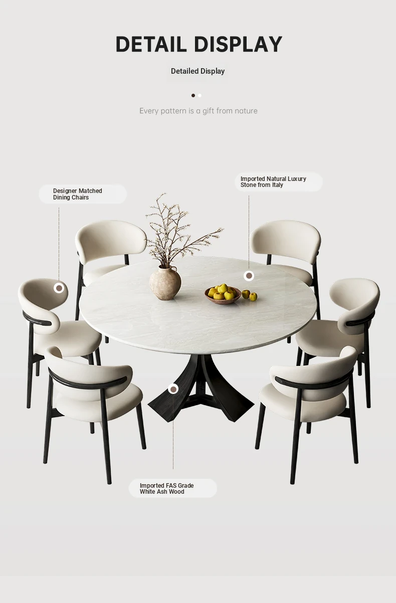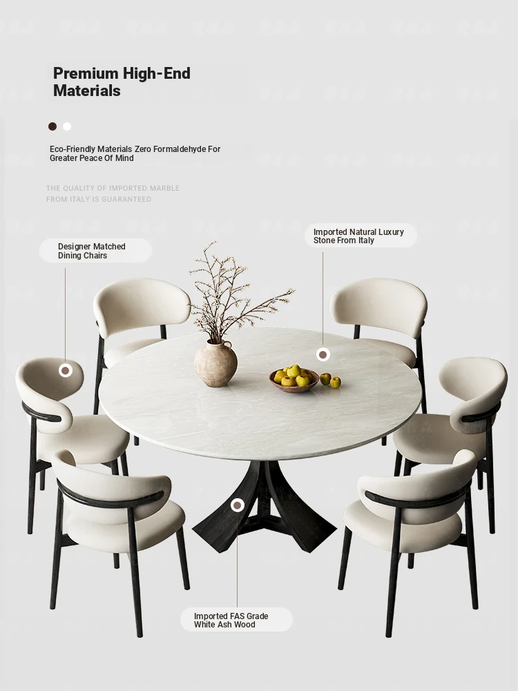 Nordic Style Solid Wood Dining Table with Natural Luxury Stone - Elegant Round Dining Set in Ash Wood by Fanson for Home Use