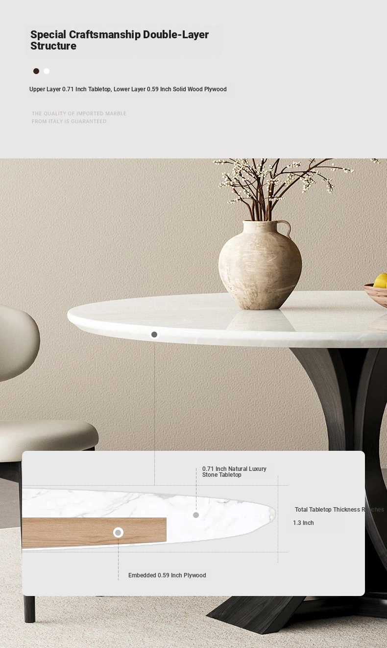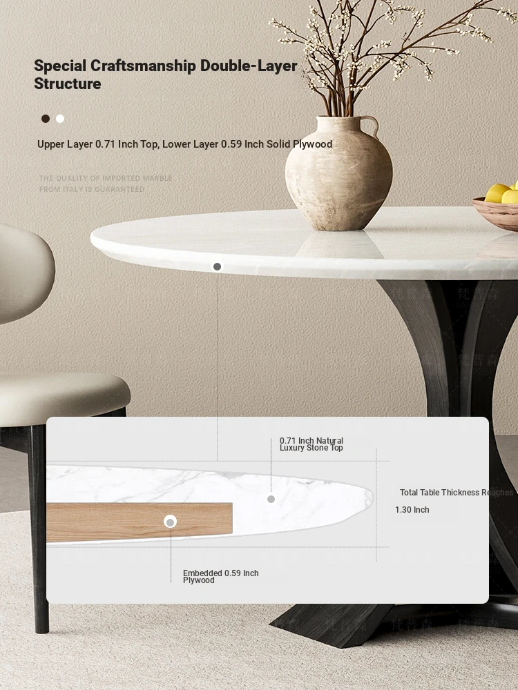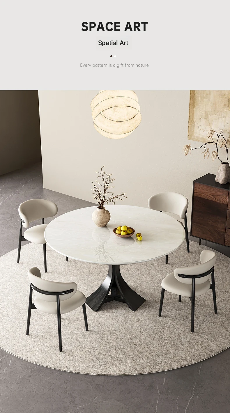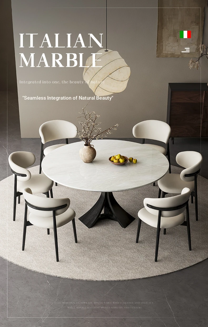 Nordic Style Solid Wood Dining Table with Natural Luxury Stone - Elegant Round Dining Set in Ash Wood by Fanson for Home Use