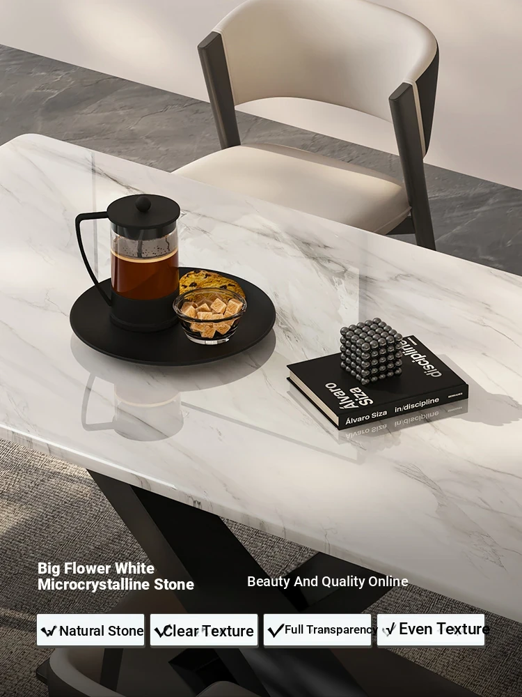 [Big Flower White] Natural Microlite Dining Table + Special Cat Claw Leather Dining Chair * 4