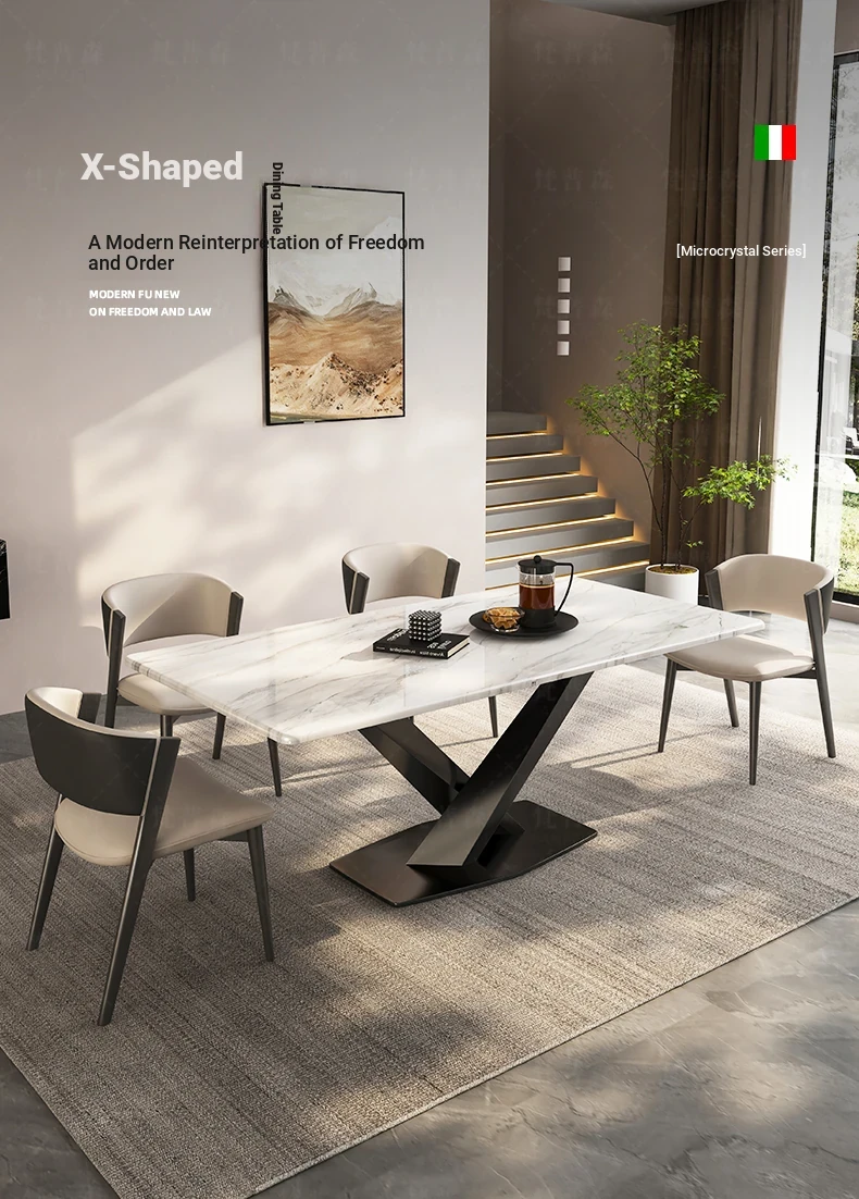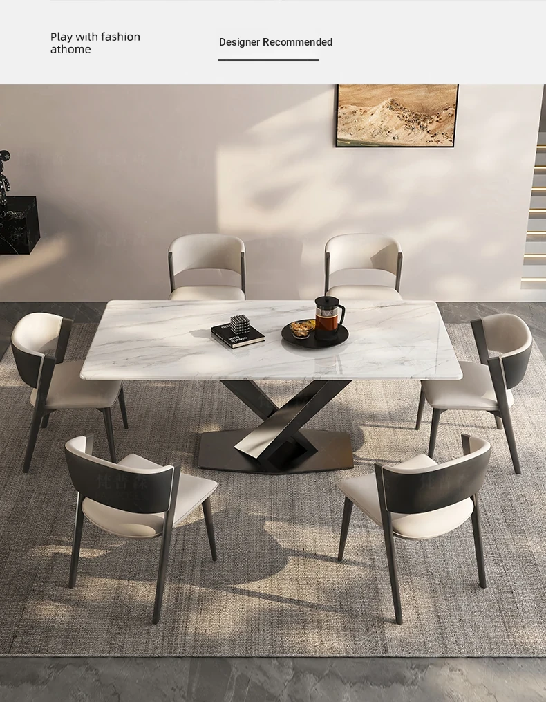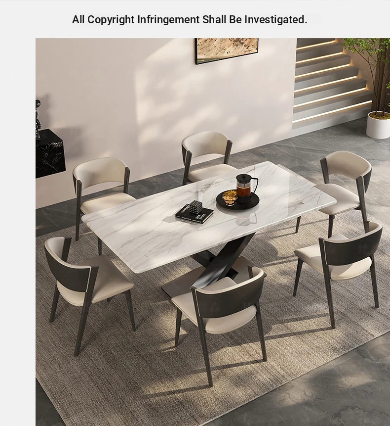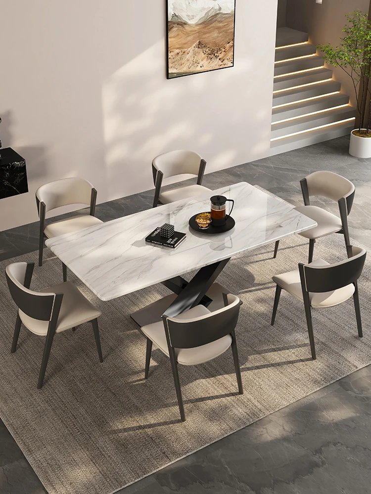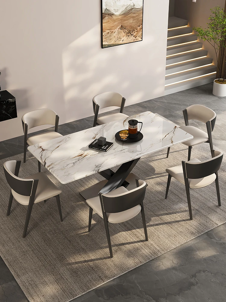 [Big White] Natural Microlite Dining Table + Special Cat Claw Leather Dining Chair * 6