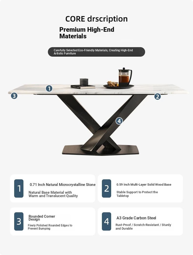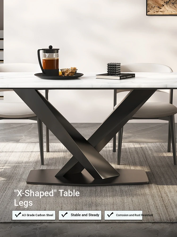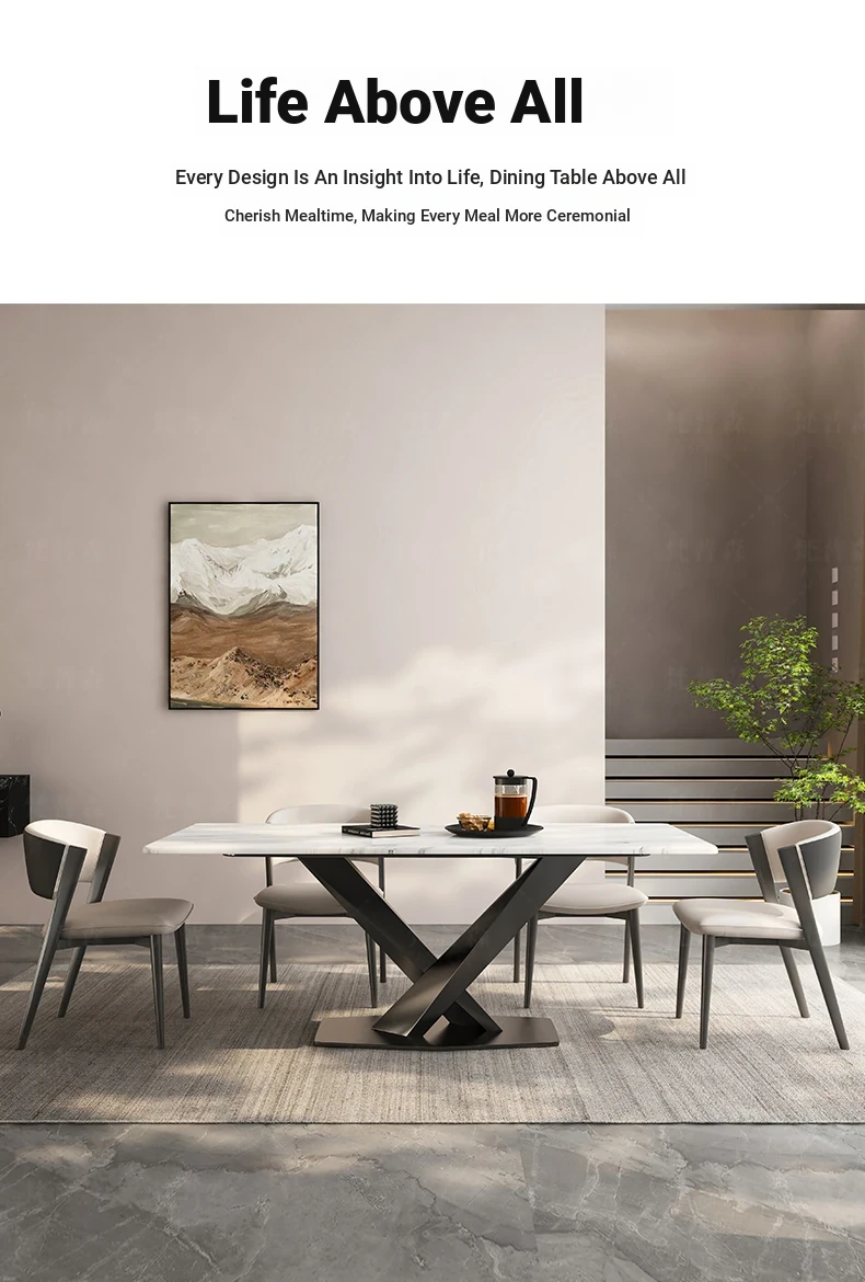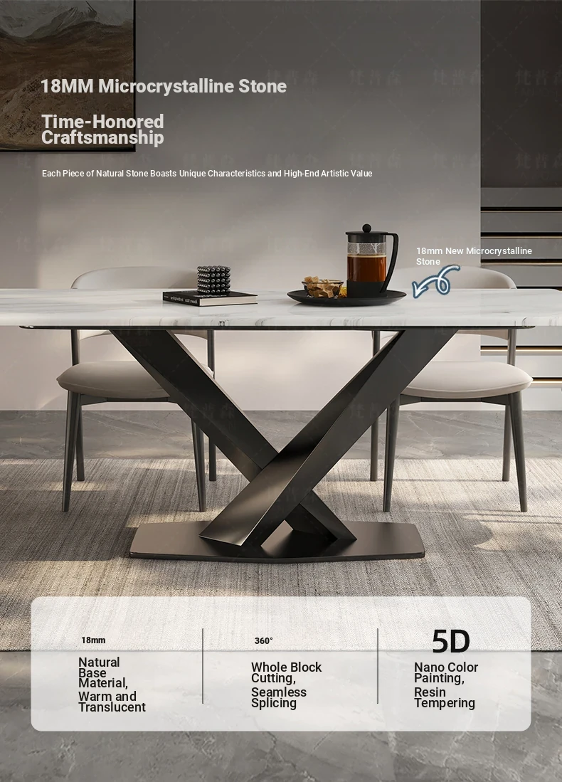 [Big White] Natural Microlite Dining Table + Special Cat Claw Leather Dining Chair * 6