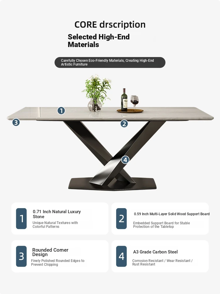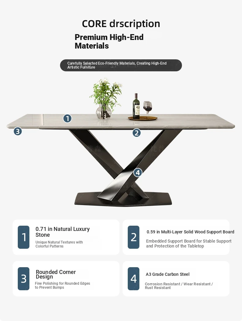Vansun Luxury Natural Stone Dining Table - Elegant Rectangle Table with Premium Quality Karel Ice Jade Finish for a Sophisticated Dining Experience
