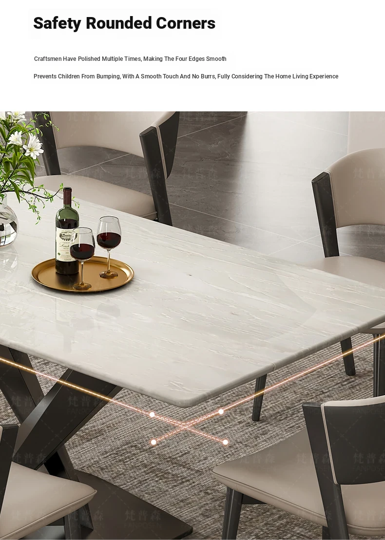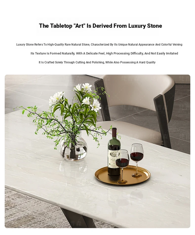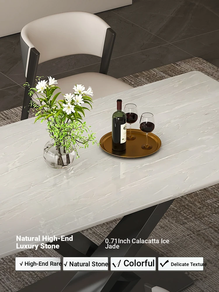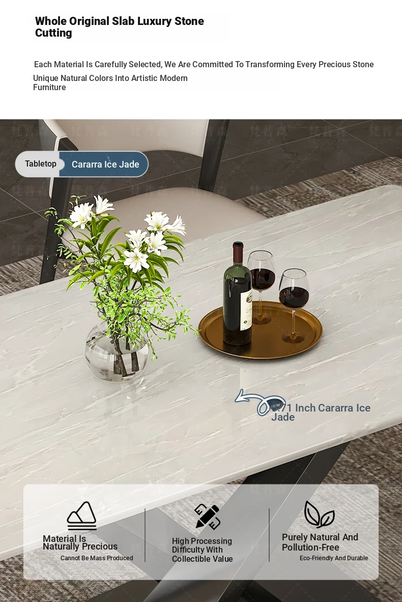 [Embedded] Cary ice Jade natural luxury stone dining table + leather dining chair * 6