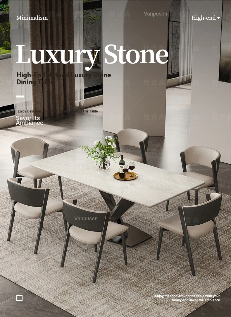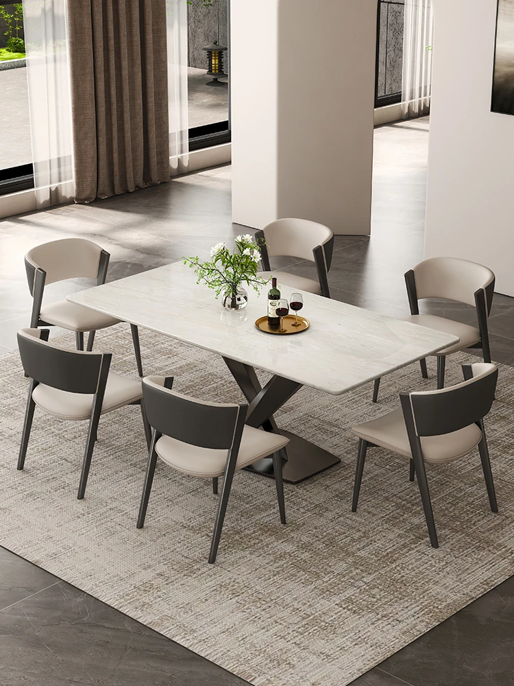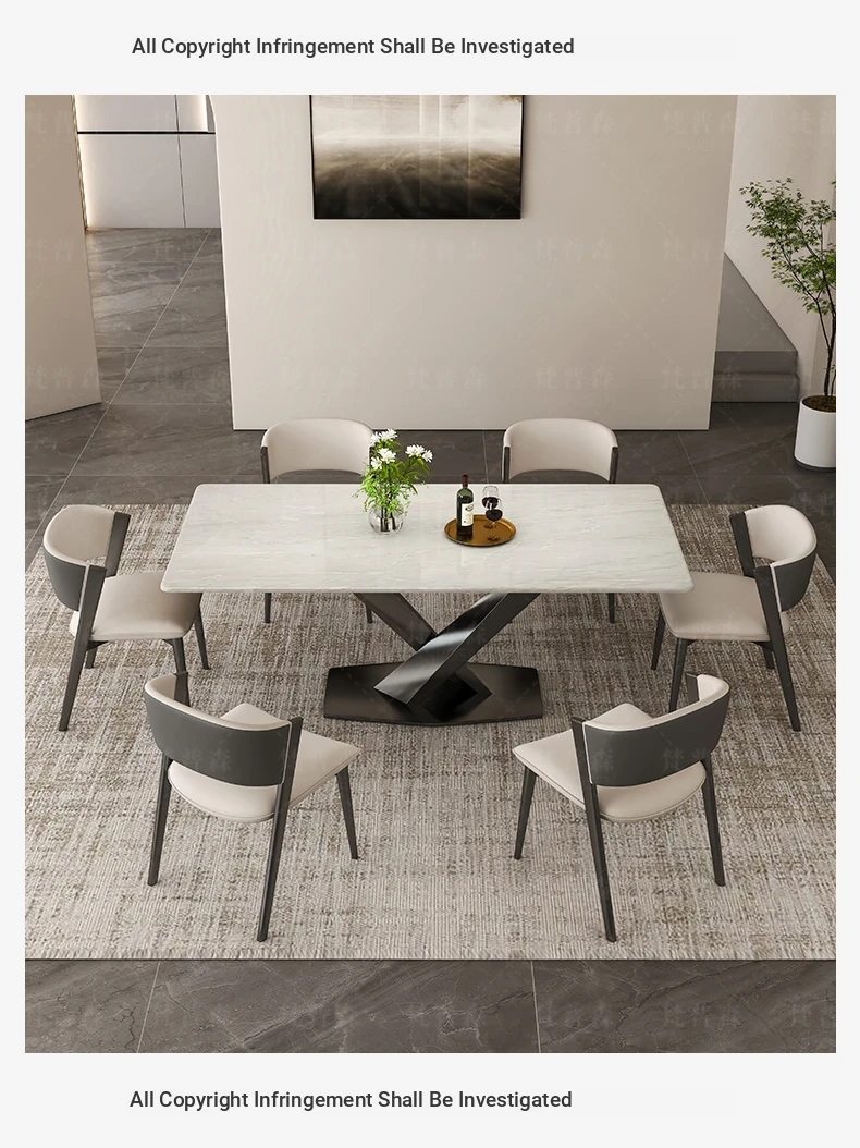[Embedded] Cary Icingyu natural luxury stone dining table + leather dining chair * 4