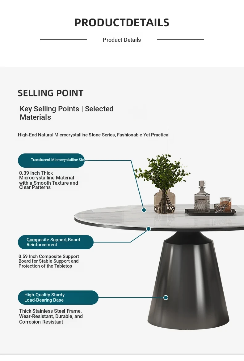 Vansun Natural Marble Dining Table Set 2025 - Elegant Round Dining Table with Premium Microcrystal Stone for a Luxurious Dining Experience