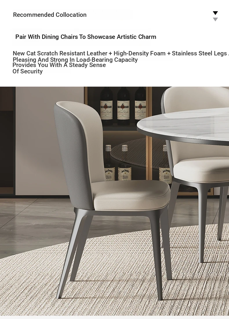 [Big White] Natural Microlite Dining Table + Turntable + Classy Cat Scratch Leather Dining Chair * 4