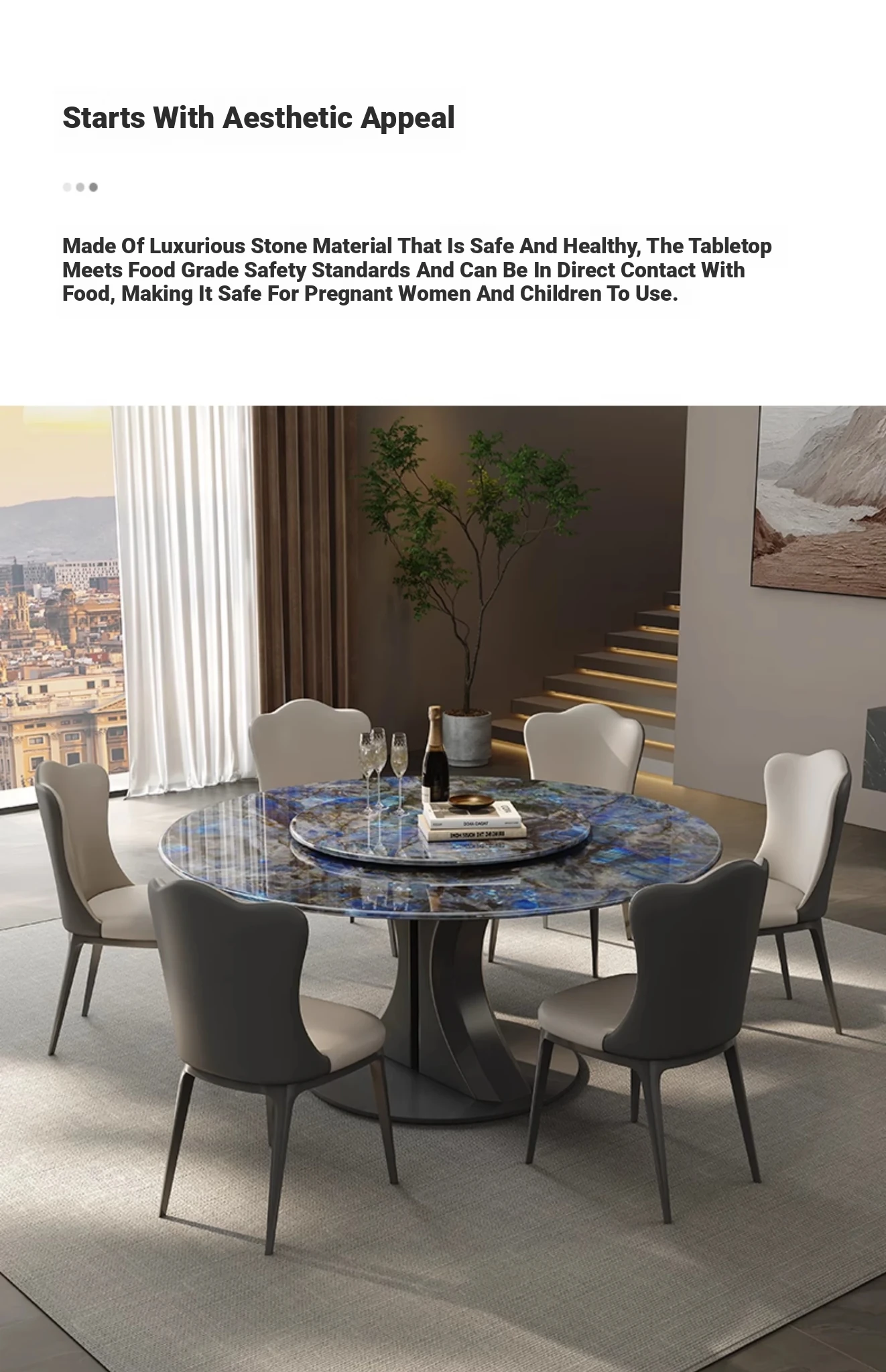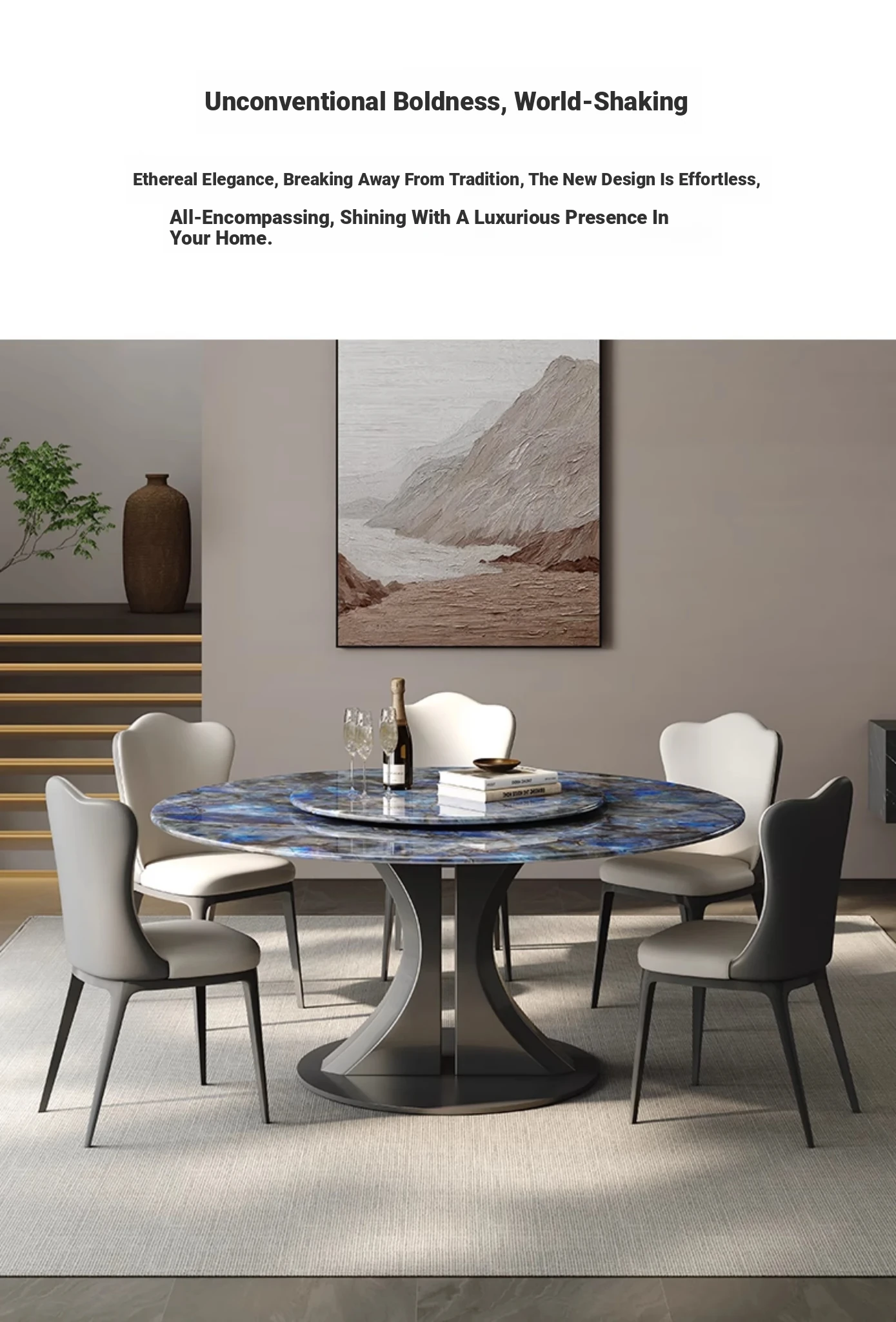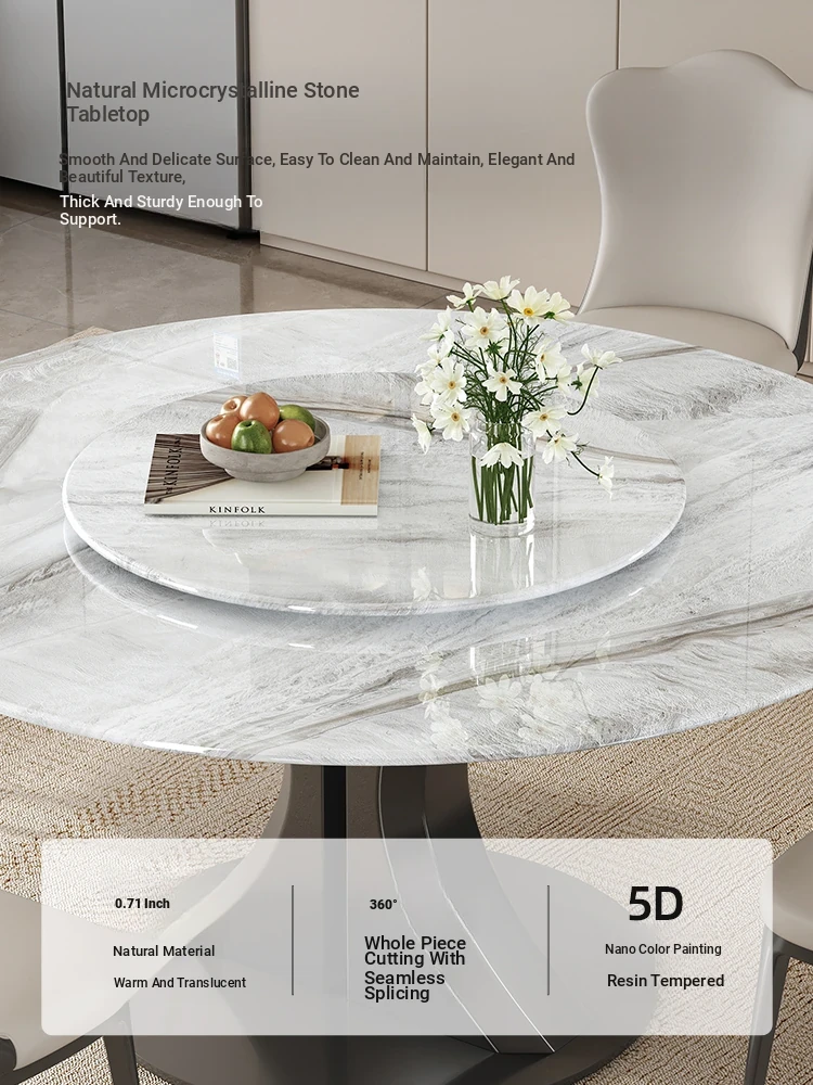 Vansun Natural Marble Round Dining Table - Elegant Microcrystalline Stone Design for a Luxurious Dining Experience - Stylish Round Marble Table with Chairs