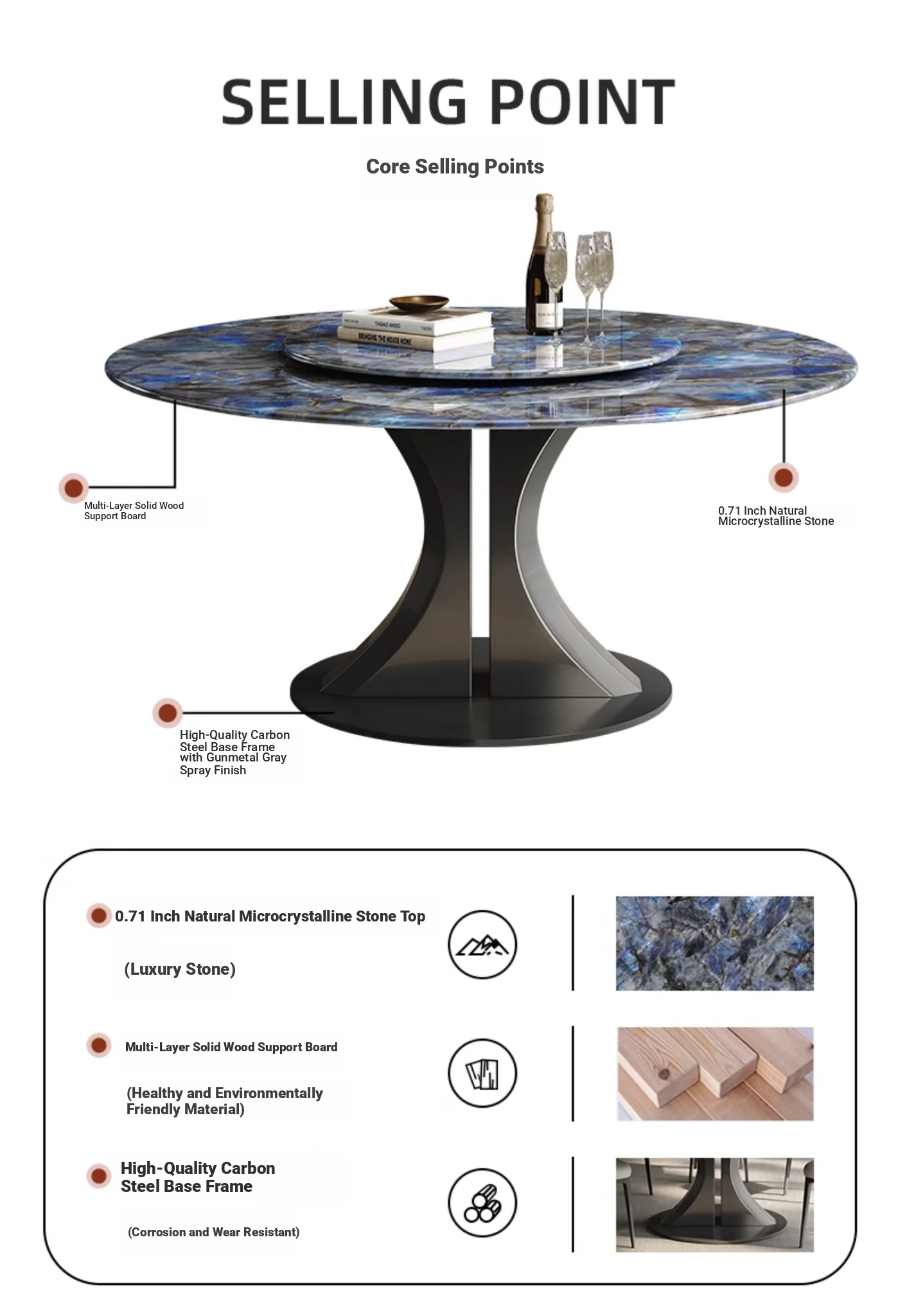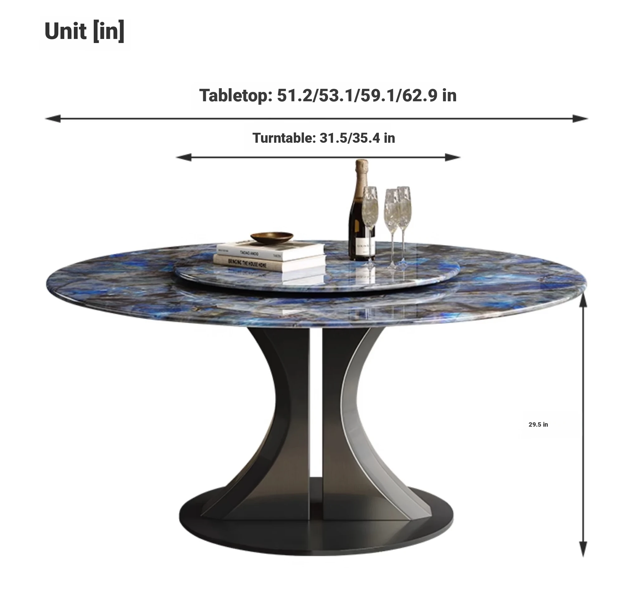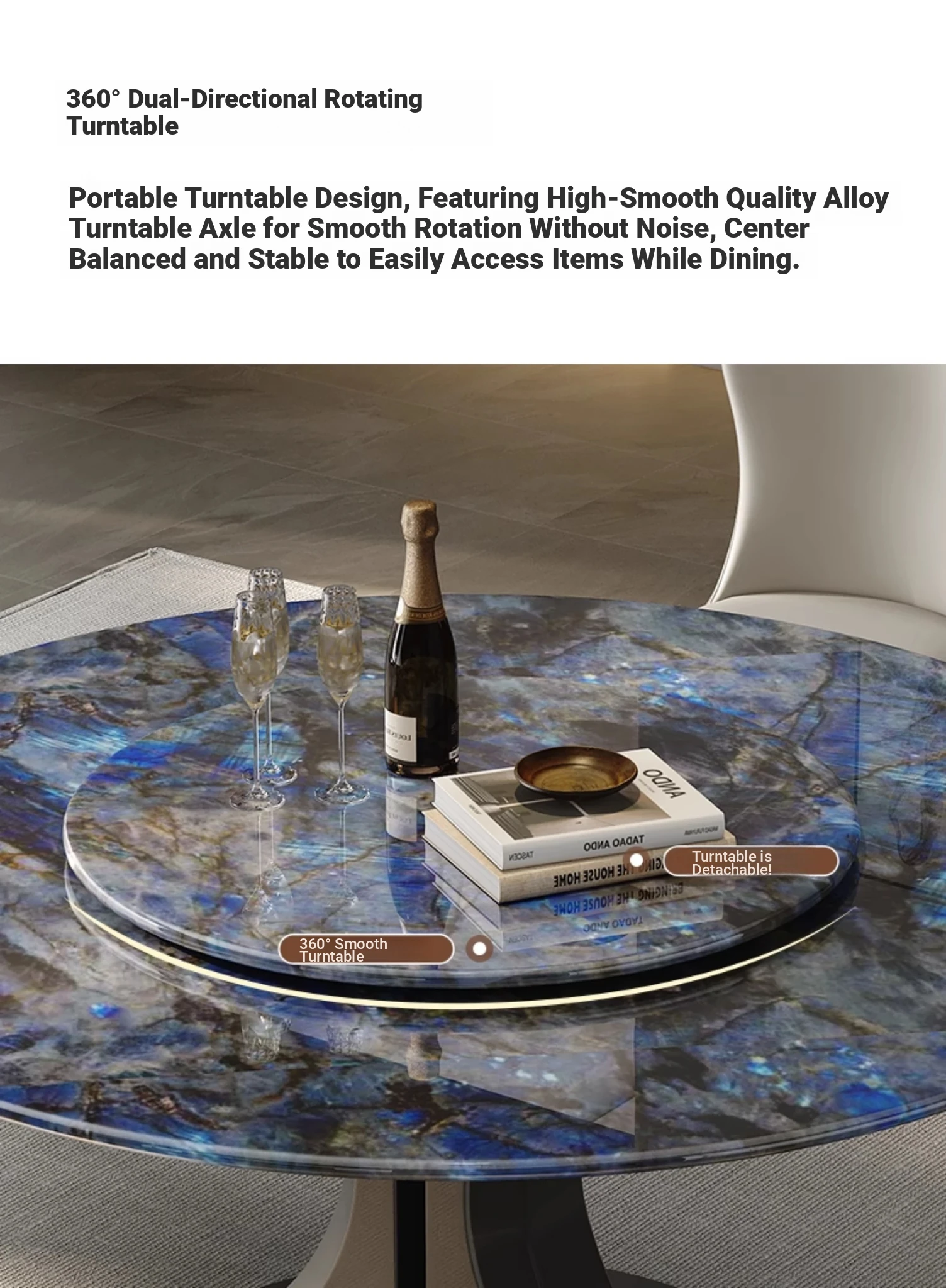 Blue Jade microlite dining table + turntable