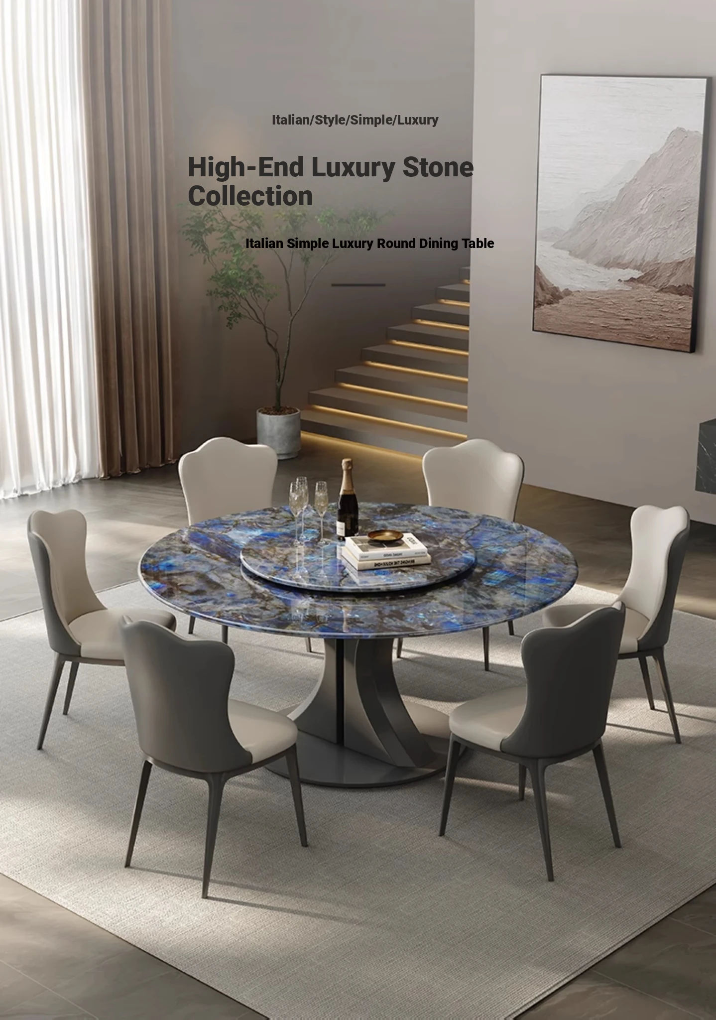 Shuiyunjian Microlite Dining Table + Turntable + Cat Scratch Leather Dining Chair * 4