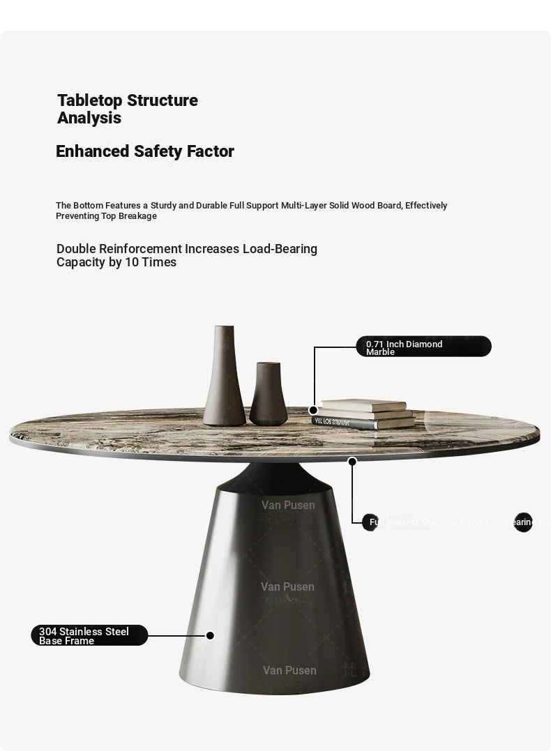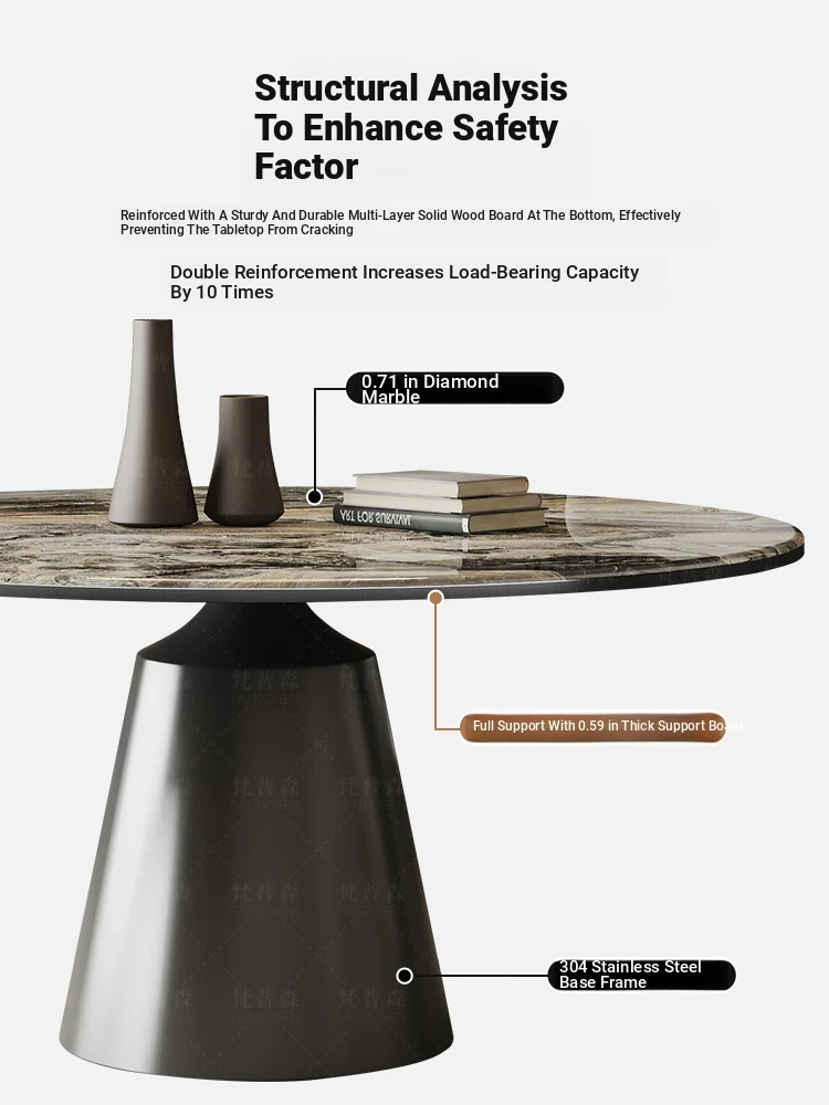 Venetian Brown Marble Round Dining Table with Rotating Tray - Luxury Home Décor, Elegant Design for Stylish Dining Experiences