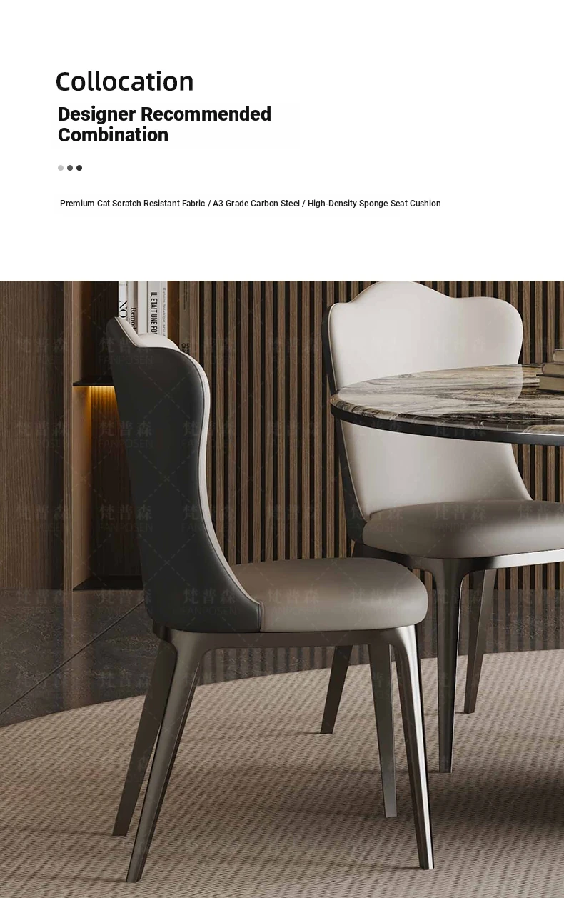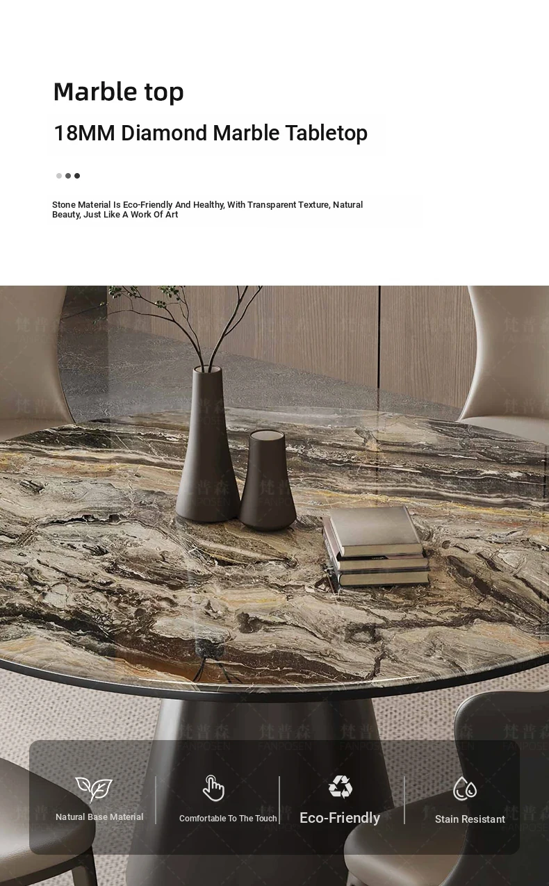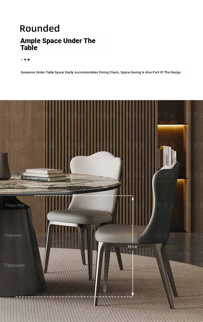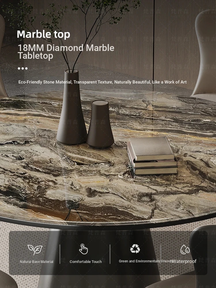 Venice brown marble round table + Super Cat scratch leather dining chair * 6