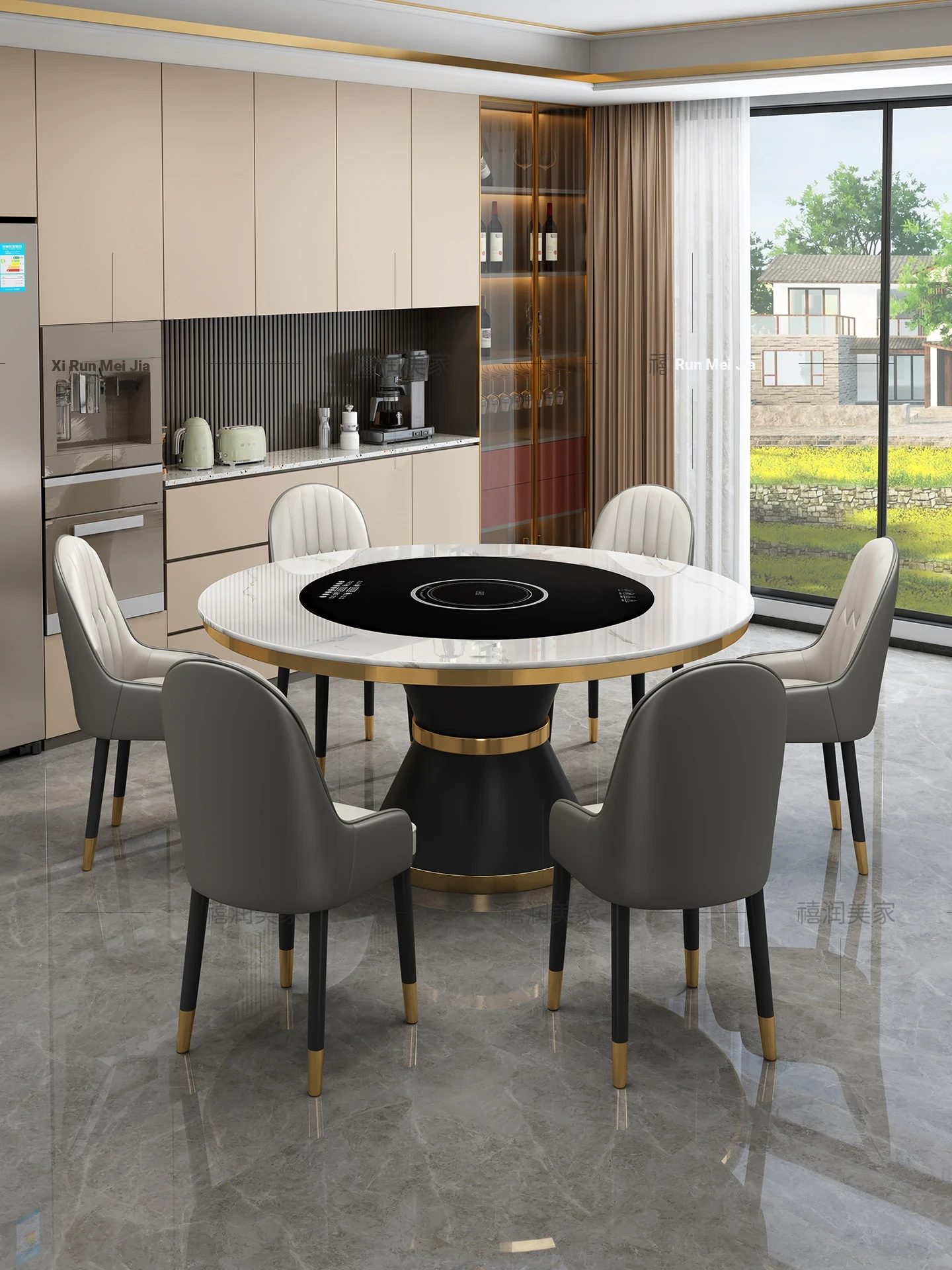 Stylish Luxury Round Dining Table Set with Electric Lazy Susan, Hot Pot, and Induction Cooker - Minimalist Design for Home and Hotel Use