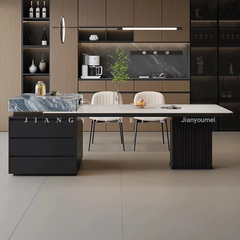 Elegant Extendable Rock Slab Dining Table - Versatile Multi-Functional Office and Home Use Combo with Chairs for Living Room and Dining Room