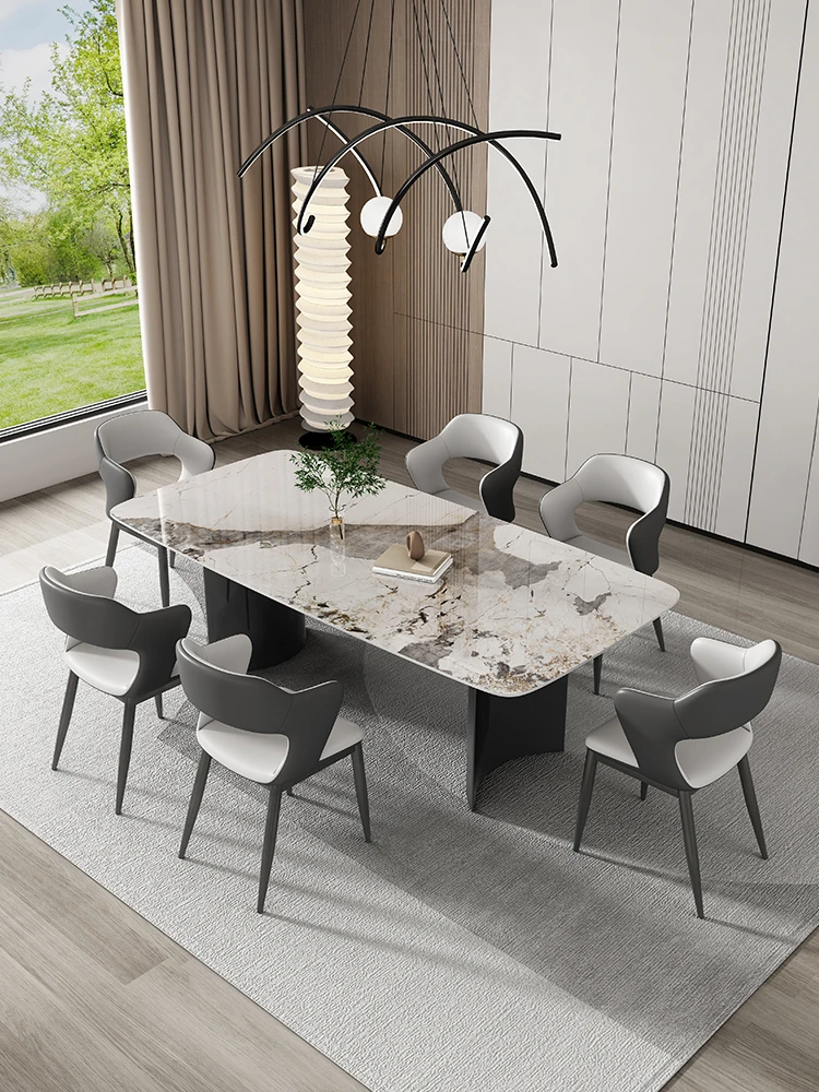Italian Minimalist Rock Plate Dining Table and Chair Set - Vanposon Modern Simple Luxury Micro-Crystal Stone Dining Table for a Chic Home Experience.