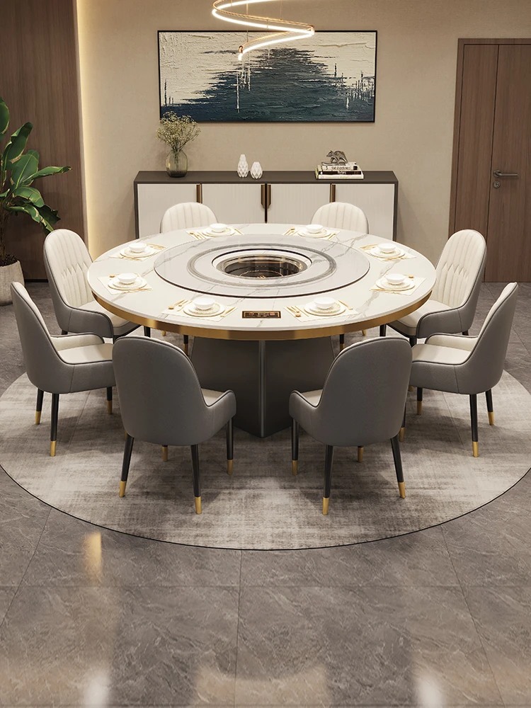 Elegant Round Dining Table Set with Sunken Induction Cooker - Modern Minimalist Design for Home and Commercial Use, Perfect for Stylish Dining Experiences.