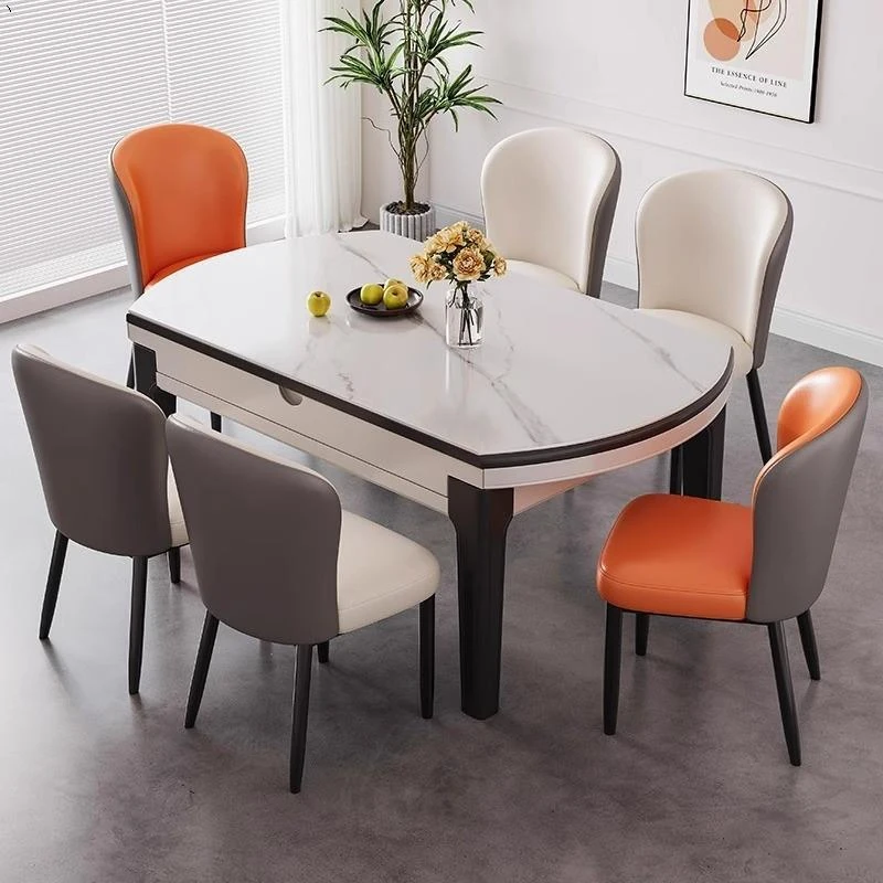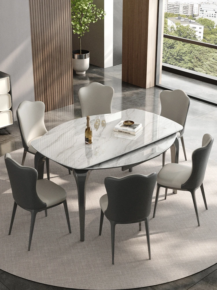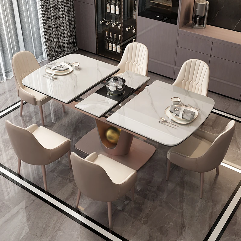 2025 New Adjustable Rectangular Dining Table with Induction Cooker - High-End Luxury Design for Home Use from Foshan