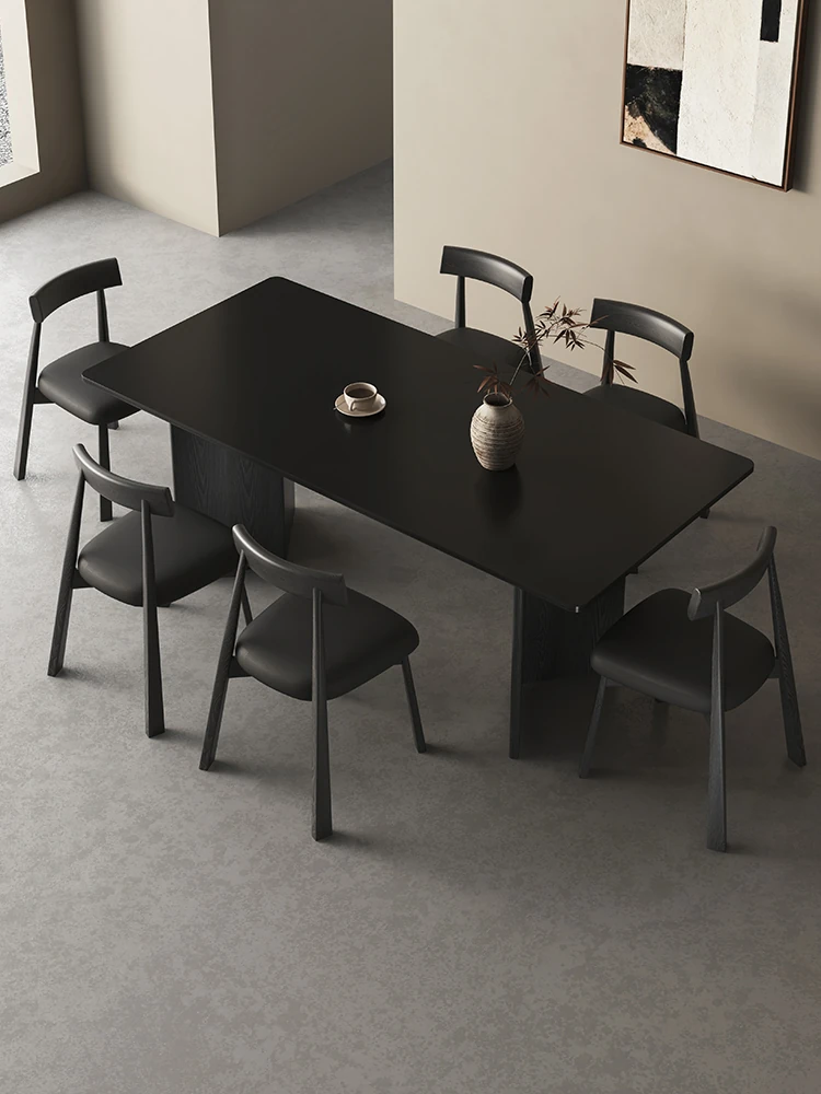 Black Slate Dining Table - Elegant Italian Minimalist Design with a Touch of Vintage Charm, Perfect for Modern Small Spaces - Rectangular Solid Wood Construction