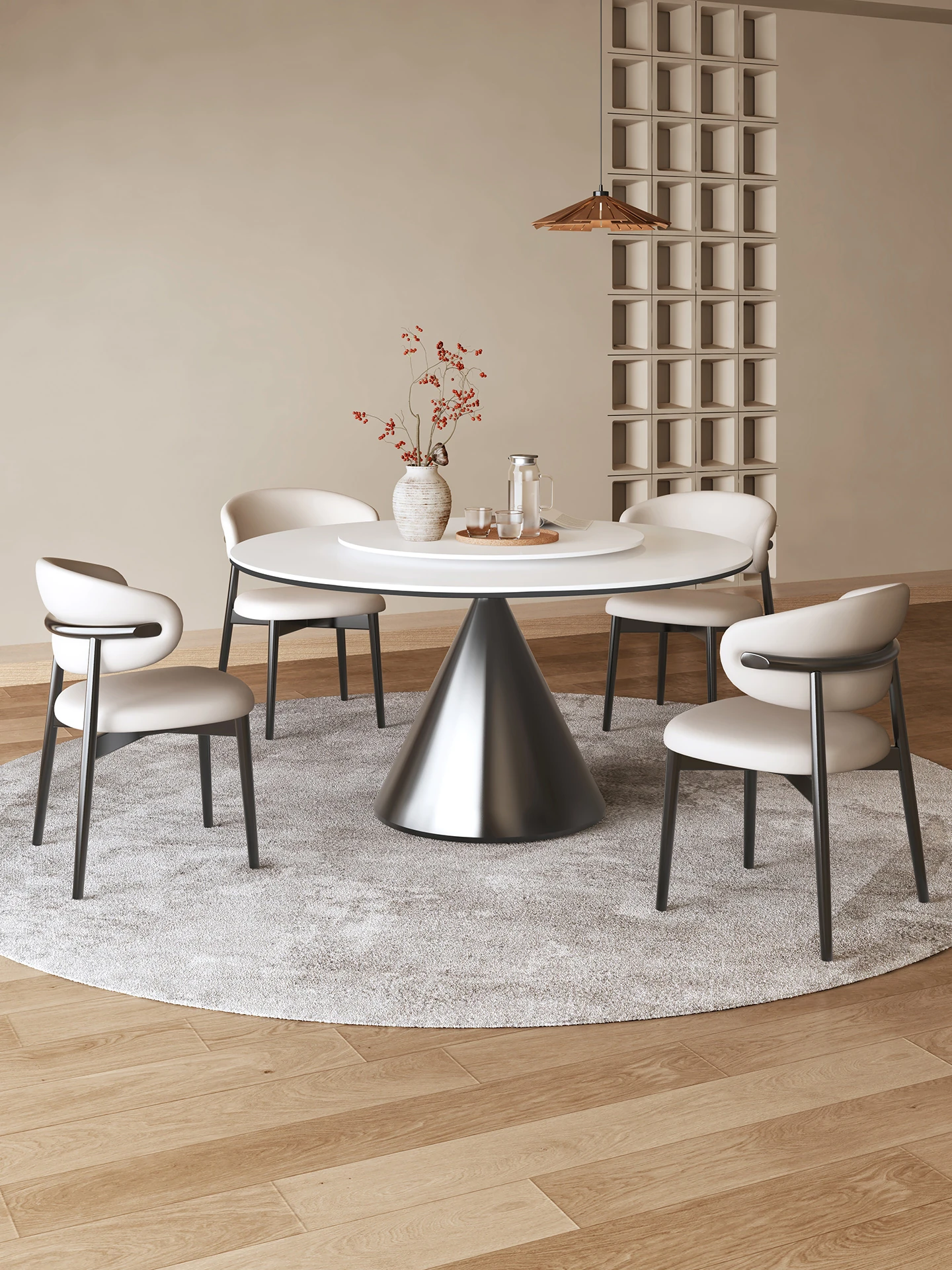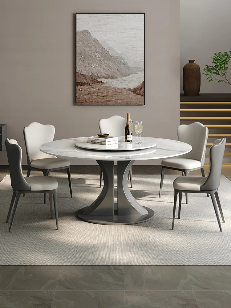 Italian Luxury Round Dining Table - Modern Minimalist Design for Small Spaces, Featuring a Stylish Rotating Tray for Elevated Dining Experience
