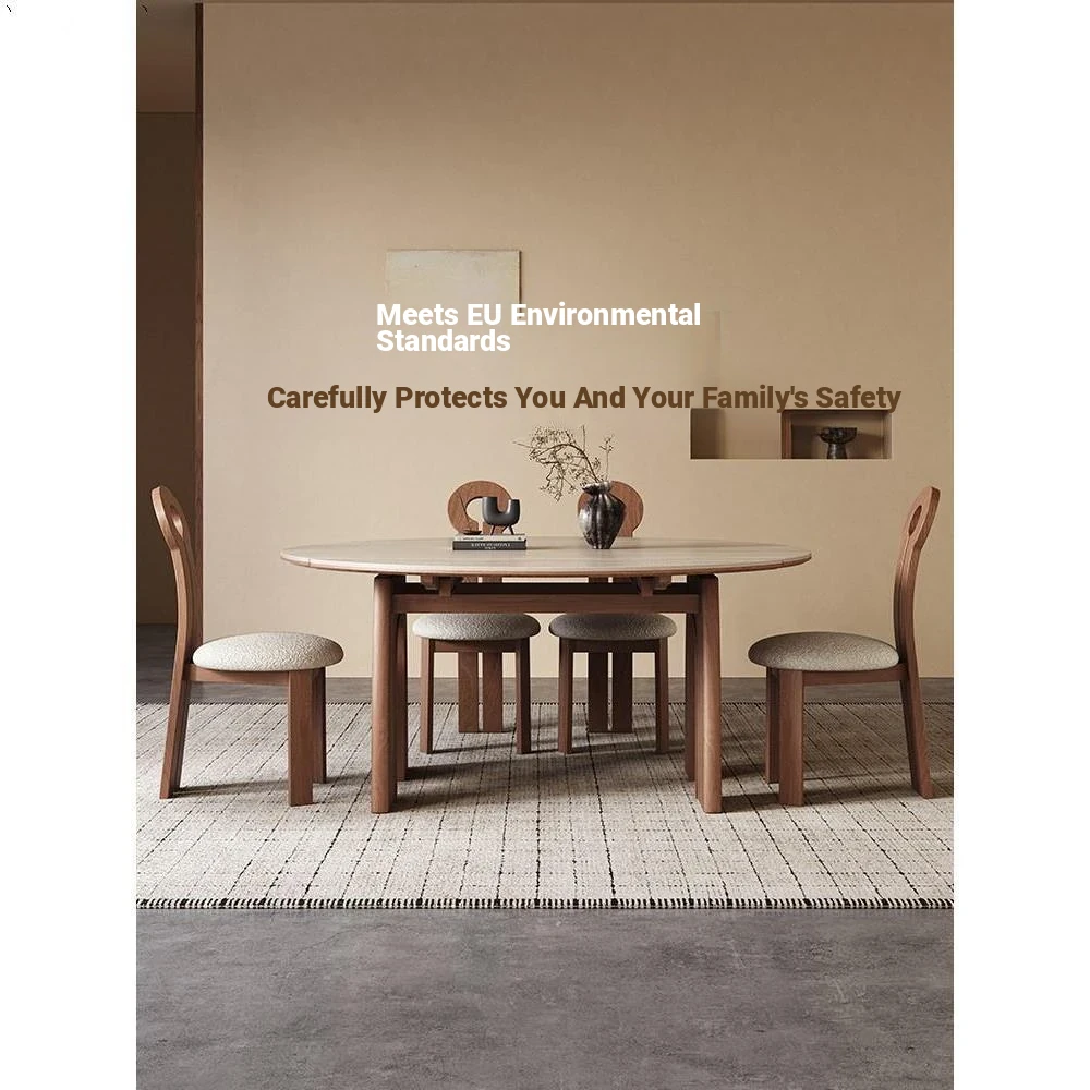Stylish Italian Minimalist Solid Wood Dining Table with Integrated Design - 2025 New Model with Wood Grain Ceramic Top, Expandable for Family Meals