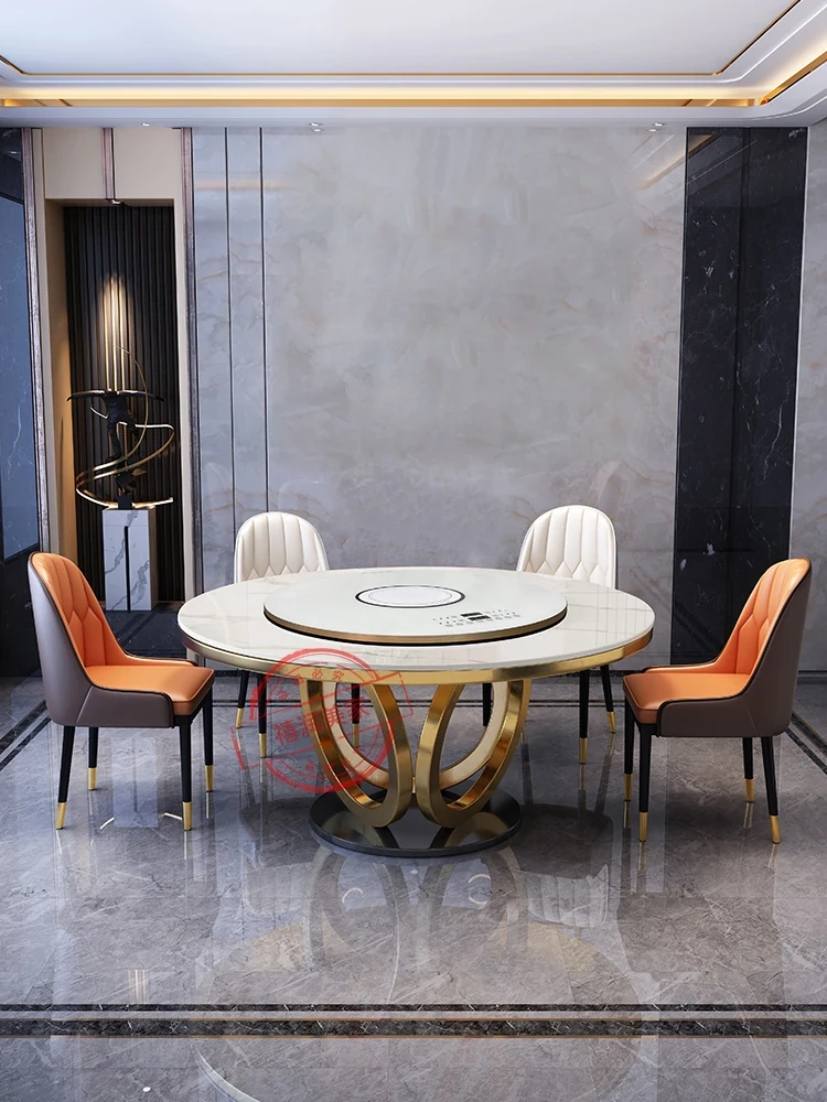 Stylish Luxury Round Dining Table Set with Electric Rotating Hot Pot and Induction Cooker - Perfect for Home and Restaurant Use