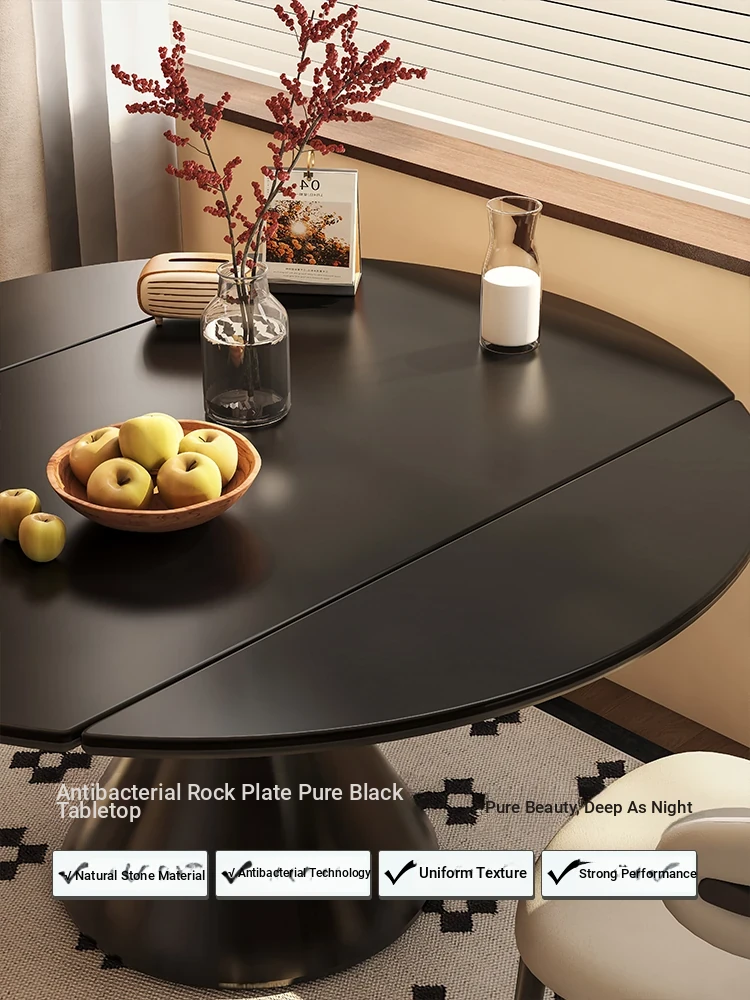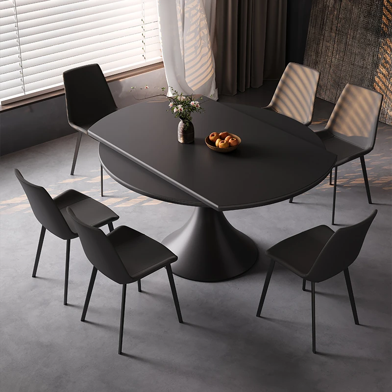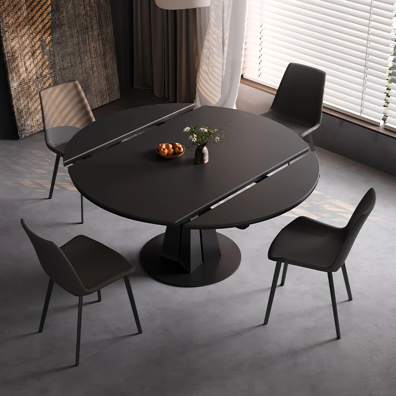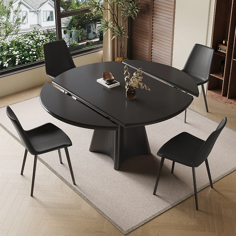 Minimalist Italian Luxury Rotating Expandable Dining Table and Chairs Set - Stylish Round and Square Design for Modern Home, Black Finish