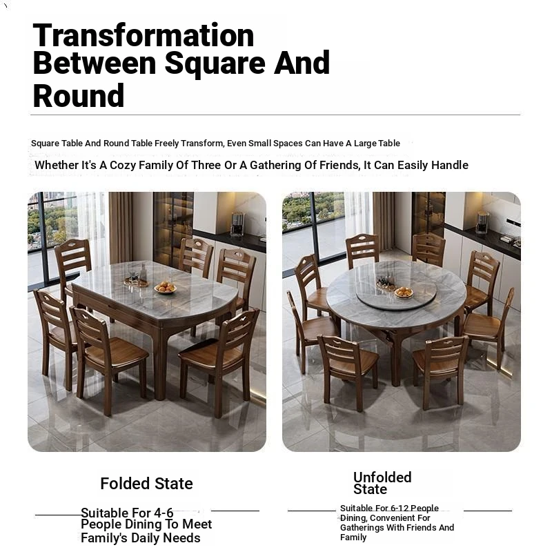 Minimalist Marble Dining Table Set - Italian Luxury Multi-functional Expandable Square and Round Table for Modern Home Dining, Perfect for Any Space!