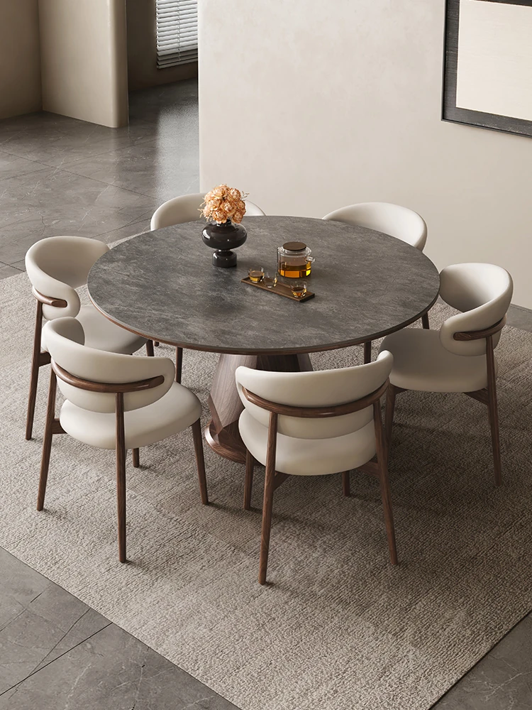 Italian Luxury Embedded Liftable Rotating Dining Table with Rock Plate - Modern Design for Small and Medium Spaces, Expandable and Versatile Dining Solution.