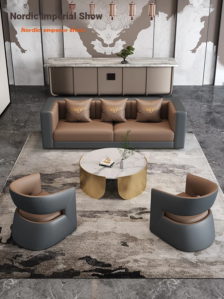 Luxury Leather Sofa for Sales Office Negotiations, Hotel Lobbies, Business Reception Areas, and Bank Waiting Rooms - Stylish and Comfortable Seating Solution for Professional Spaces