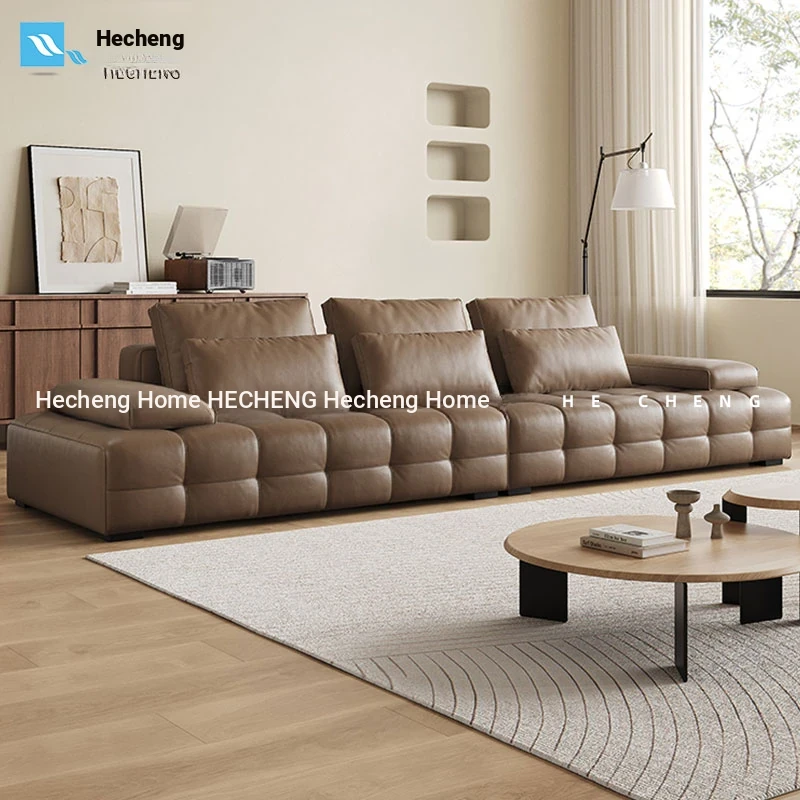 Hocheng Home Lawrence Italian Genuine Leather Sofa - Luxurious Light Luxury Living Room Sofa with Top Layer Cowhide, Trendy Design for Modern Aesthetics