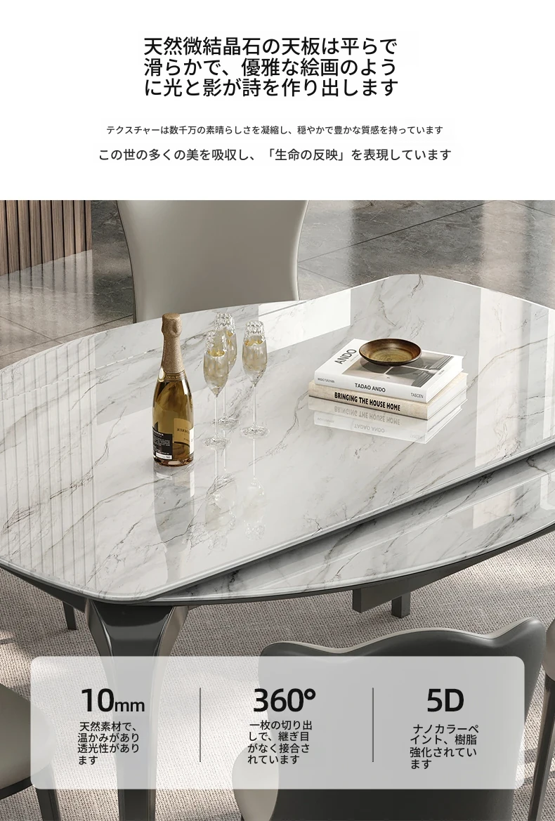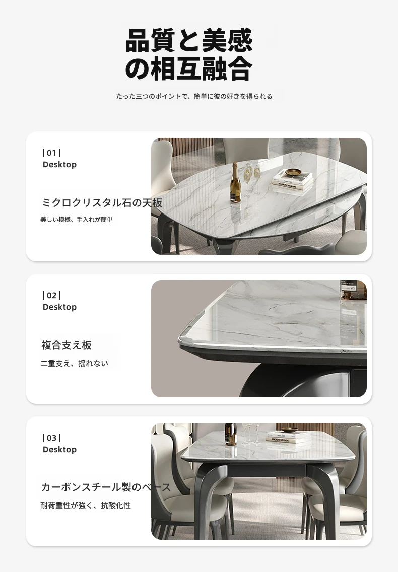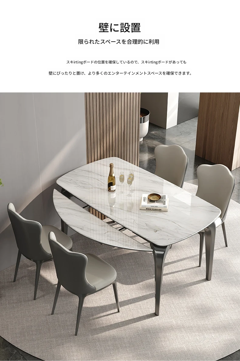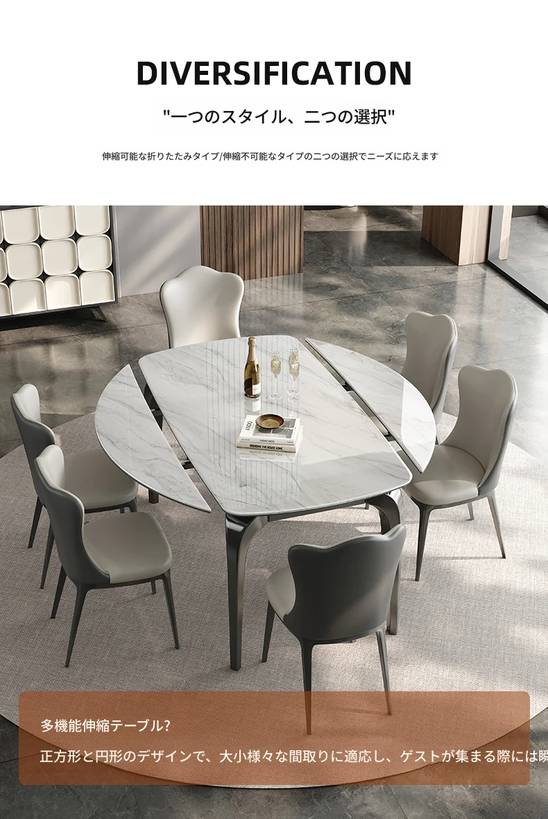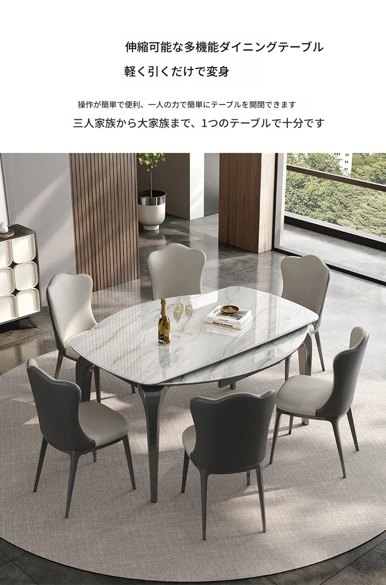 2025年新型!伸縮可能な天然ミクロクリスタル大理石の円形テーブル。四角から円形に変形、折りたたみ機能付き。スタイリッシュなデザインで、どんなインテリアにもぴったりなテーブルセット!