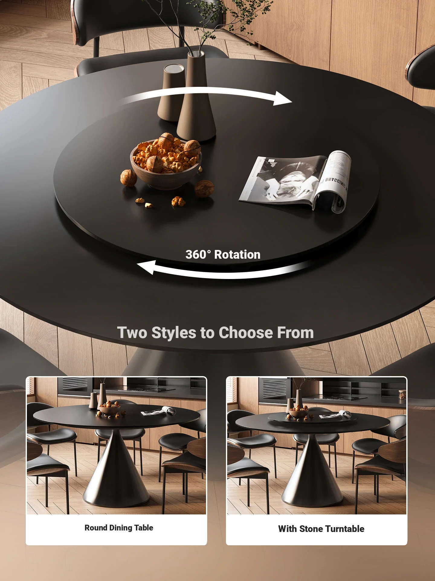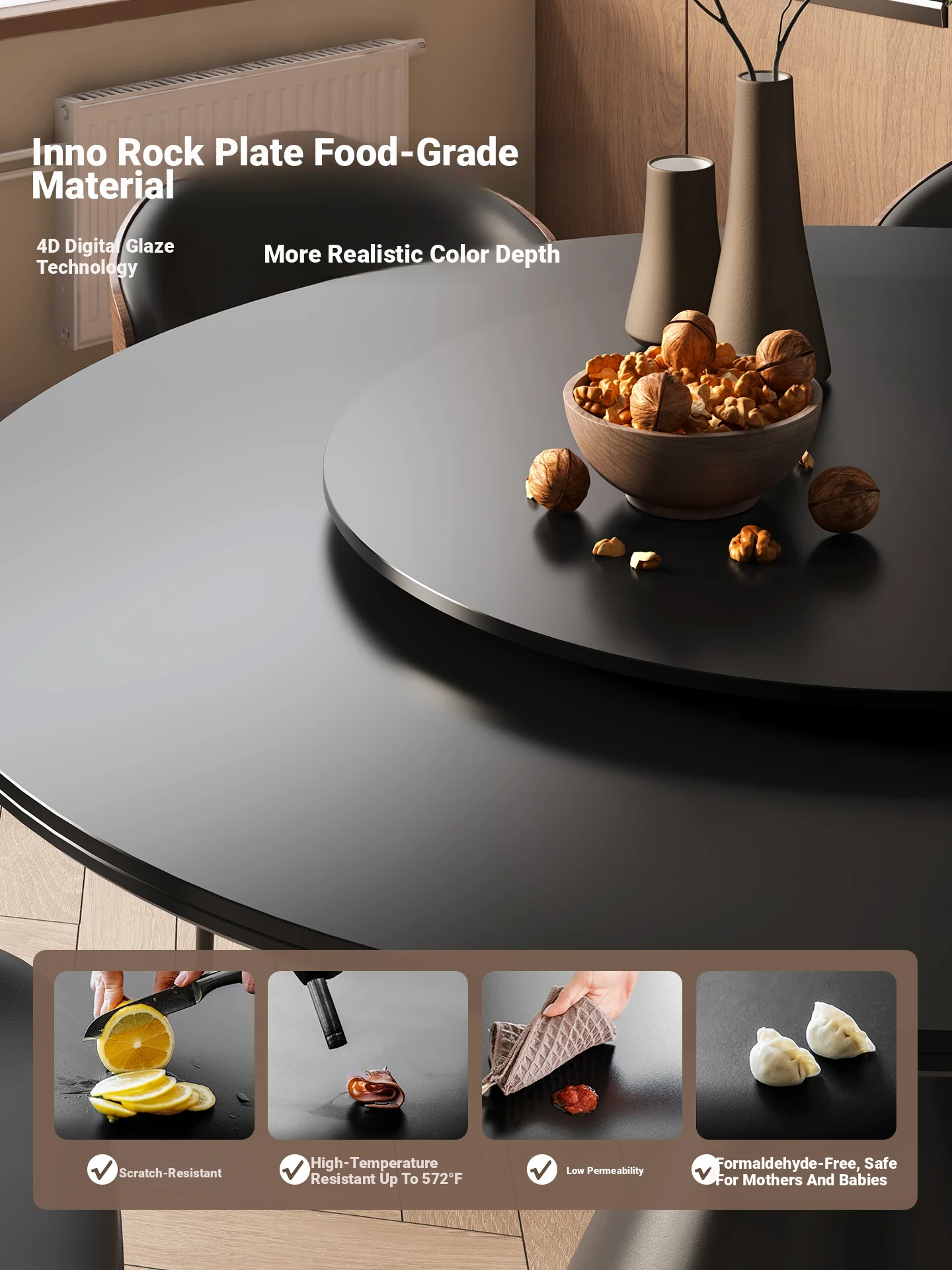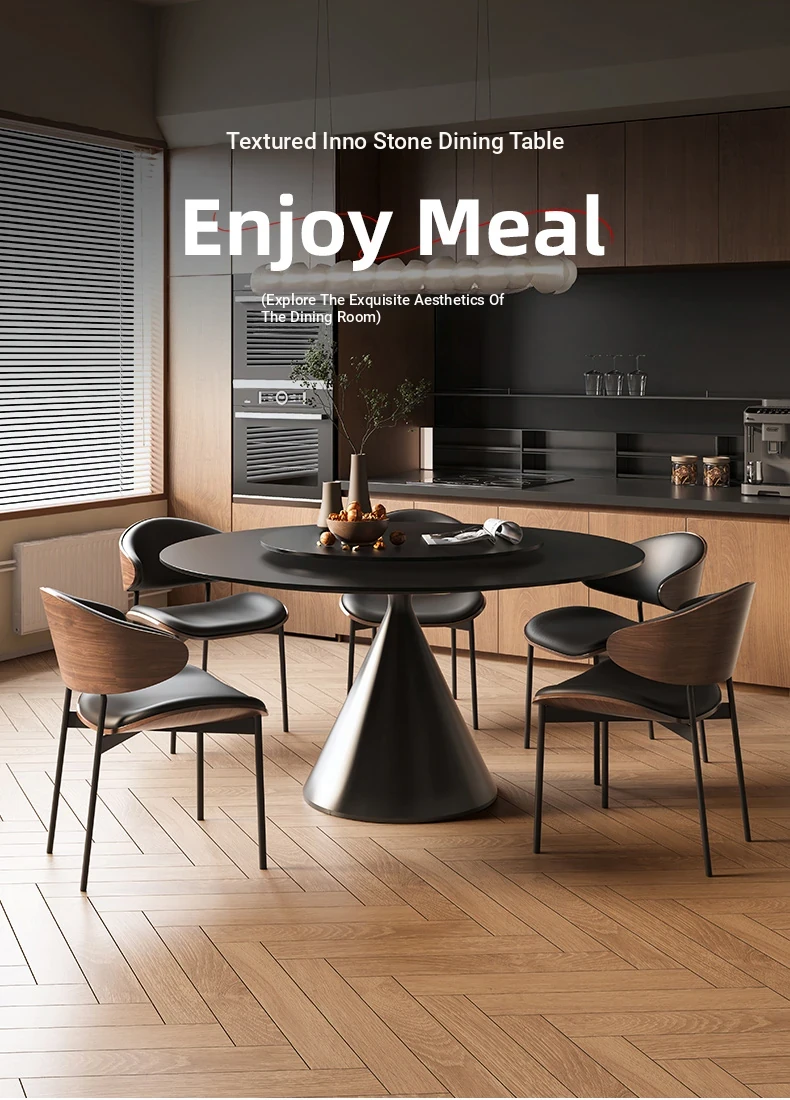 [Upgraded Composite Full-care] Enoch Rock Plate Dining Table + Turntable