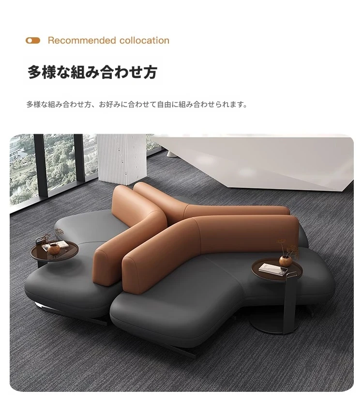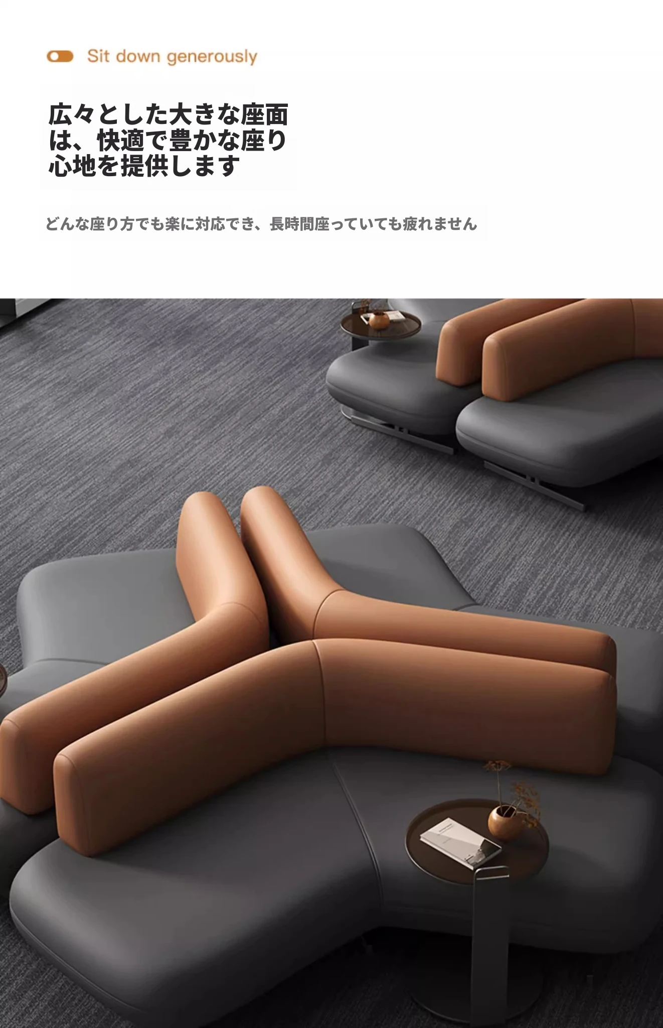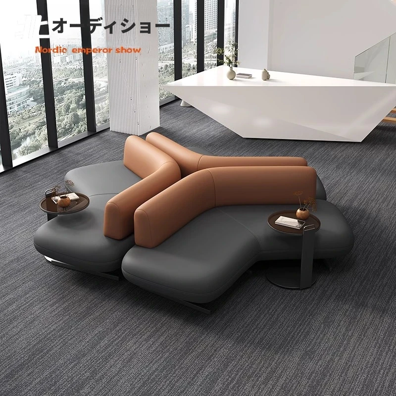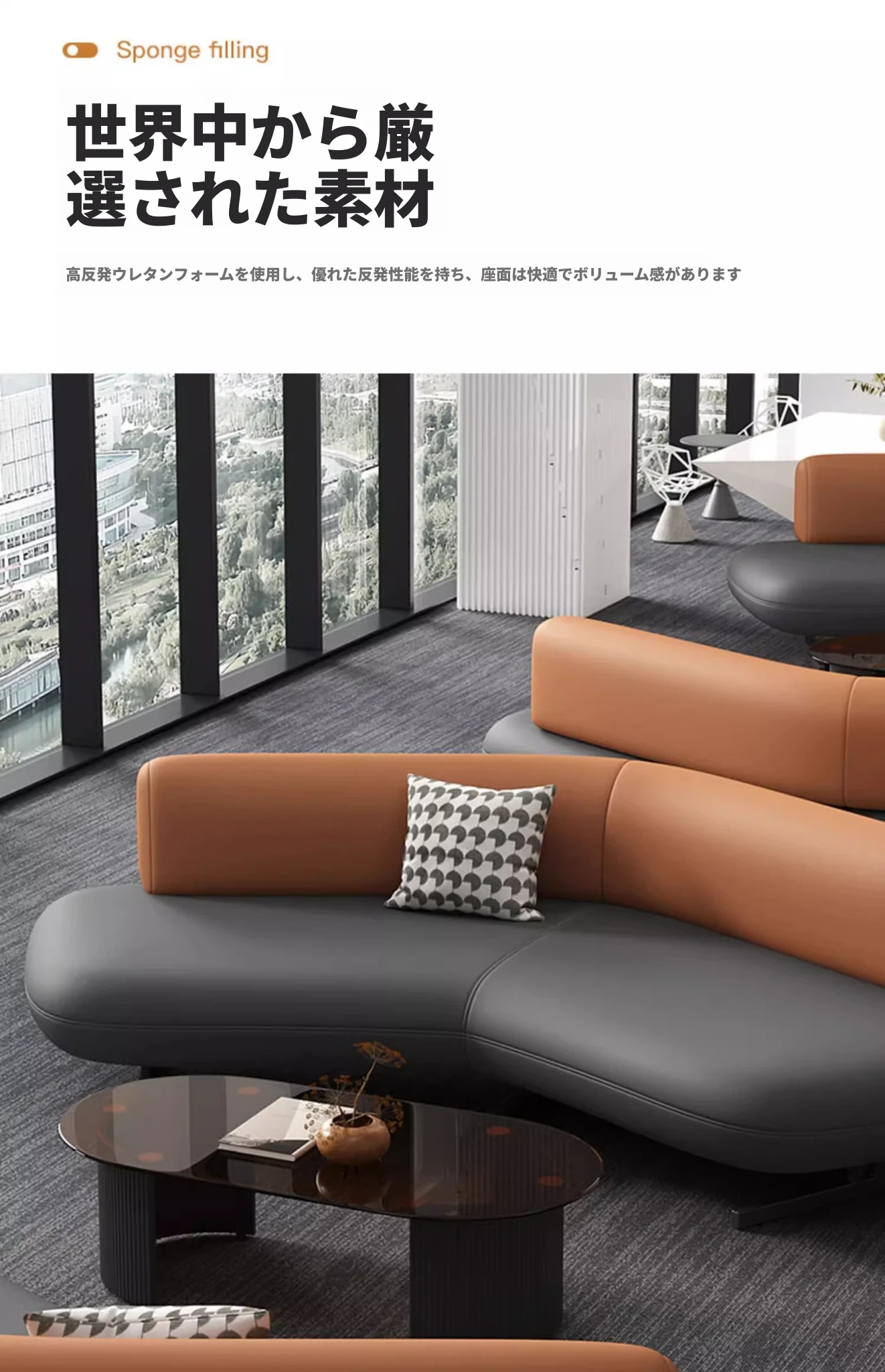 高級感溢れるレザーソファ - 不動産営業所、ホテルロビー、ビジネス接待、銀行の休憩エリアに最適!快適な座り心地で、訪れるお客様をおもてなし。おしゃれなデザインで、どんな空間にもマッチします。