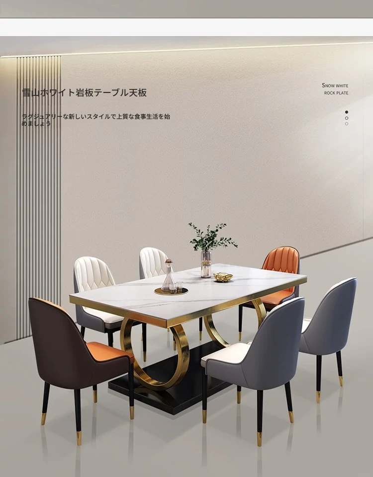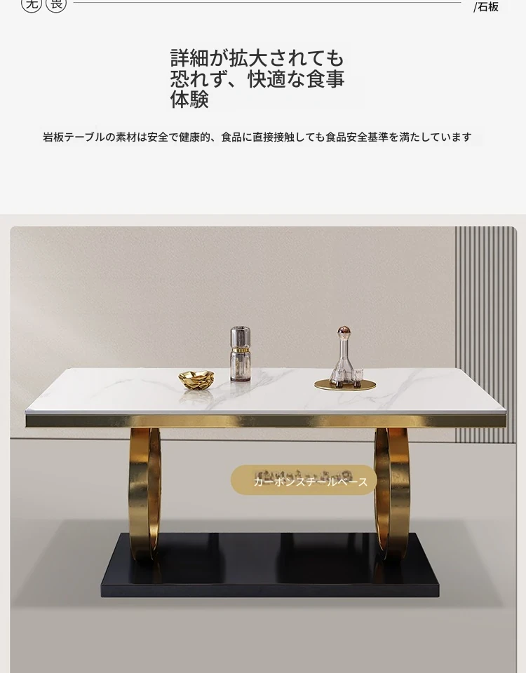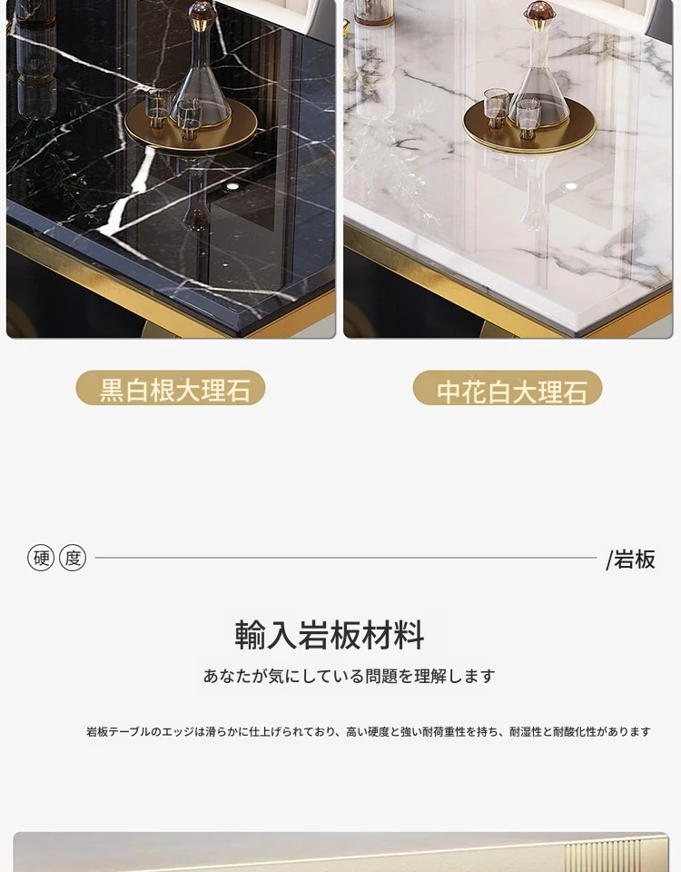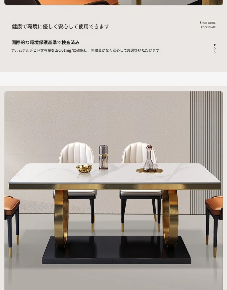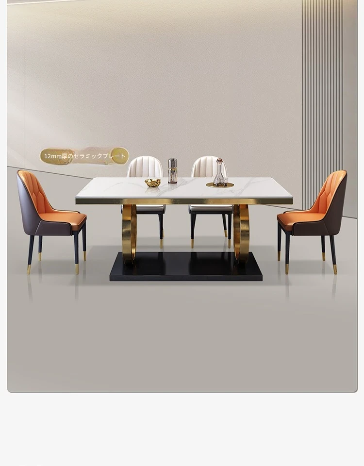 モダンな大理石の西洋風ダイニングテーブル&チェアセット - 高級感溢れる長方形のイタリアンスタイル、狭いお部屋にもぴったりなデザインで、食事の時間を特別なひとときに演出します。