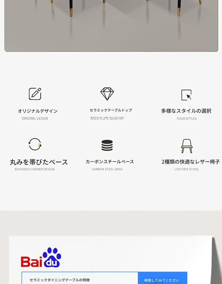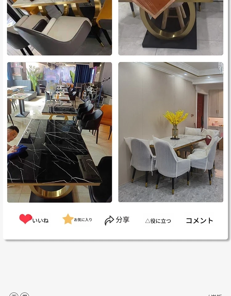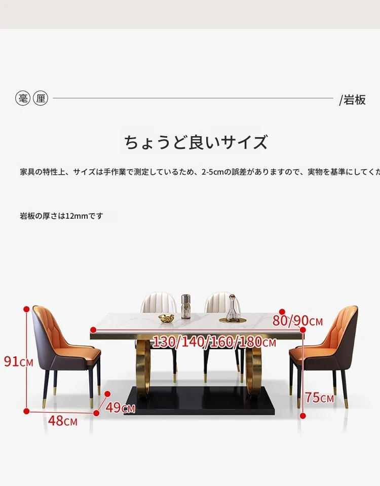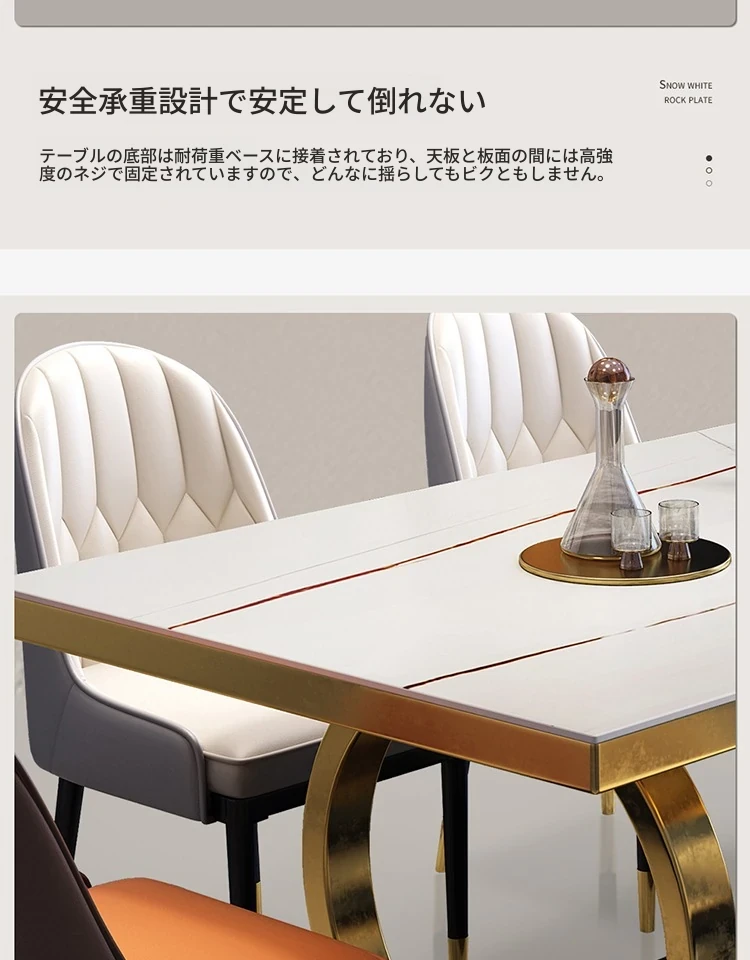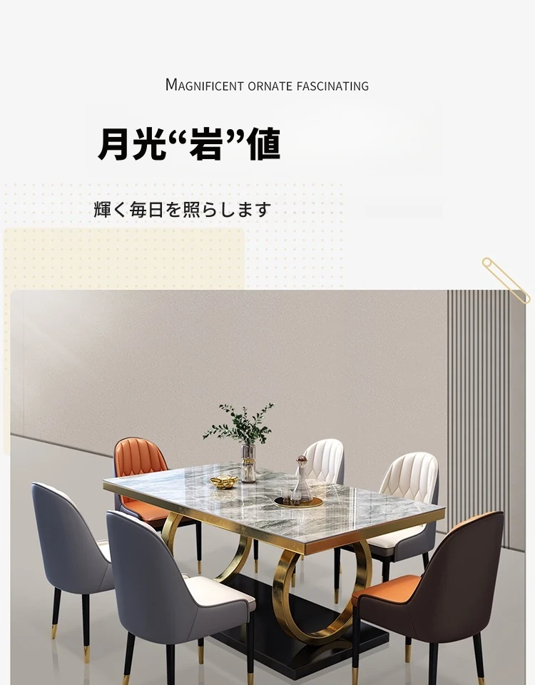 モダンな大理石の西洋風ダイニングテーブル&チェアセット - 高級感溢れる長方形のイタリアンスタイル、狭いお部屋にもぴったりなデザインで、食事の時間を特別なひとときに演出します。