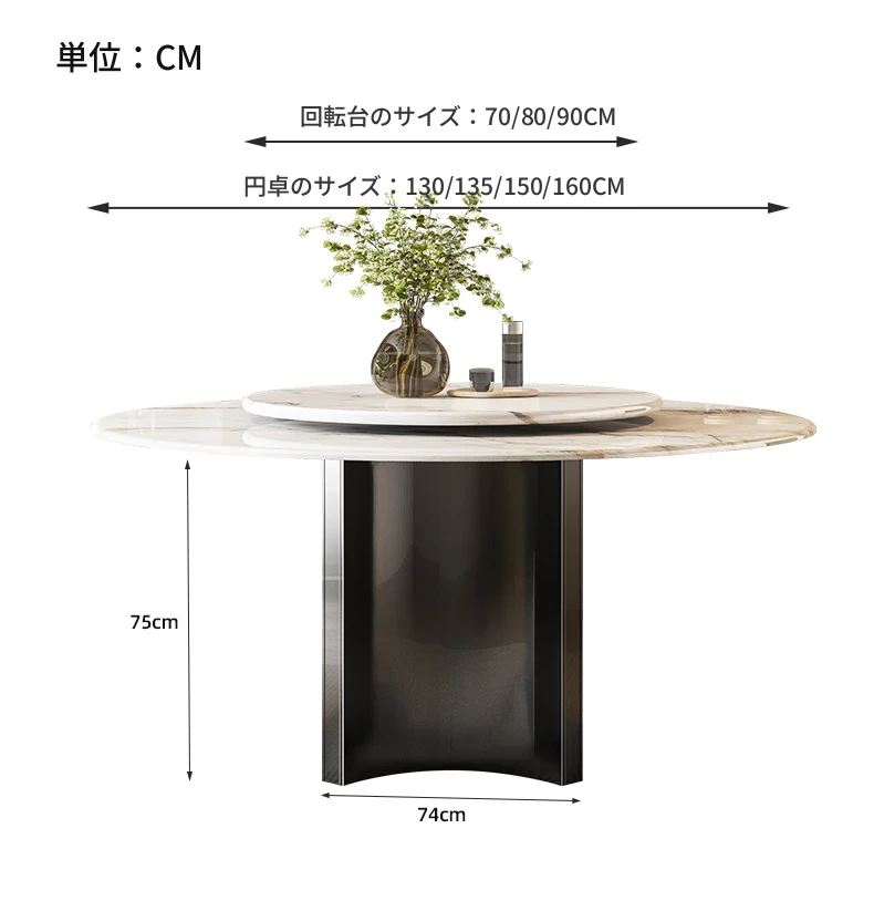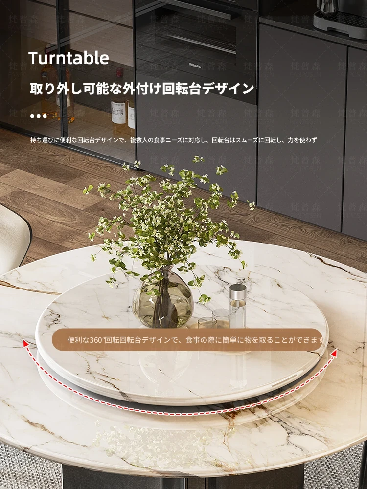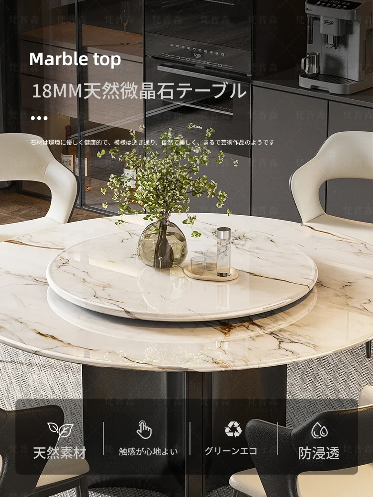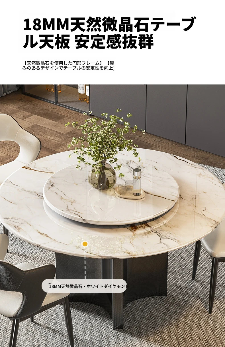 【アップグレード版複合全托】天然微晶石円形ダイニングテーブル+回転台