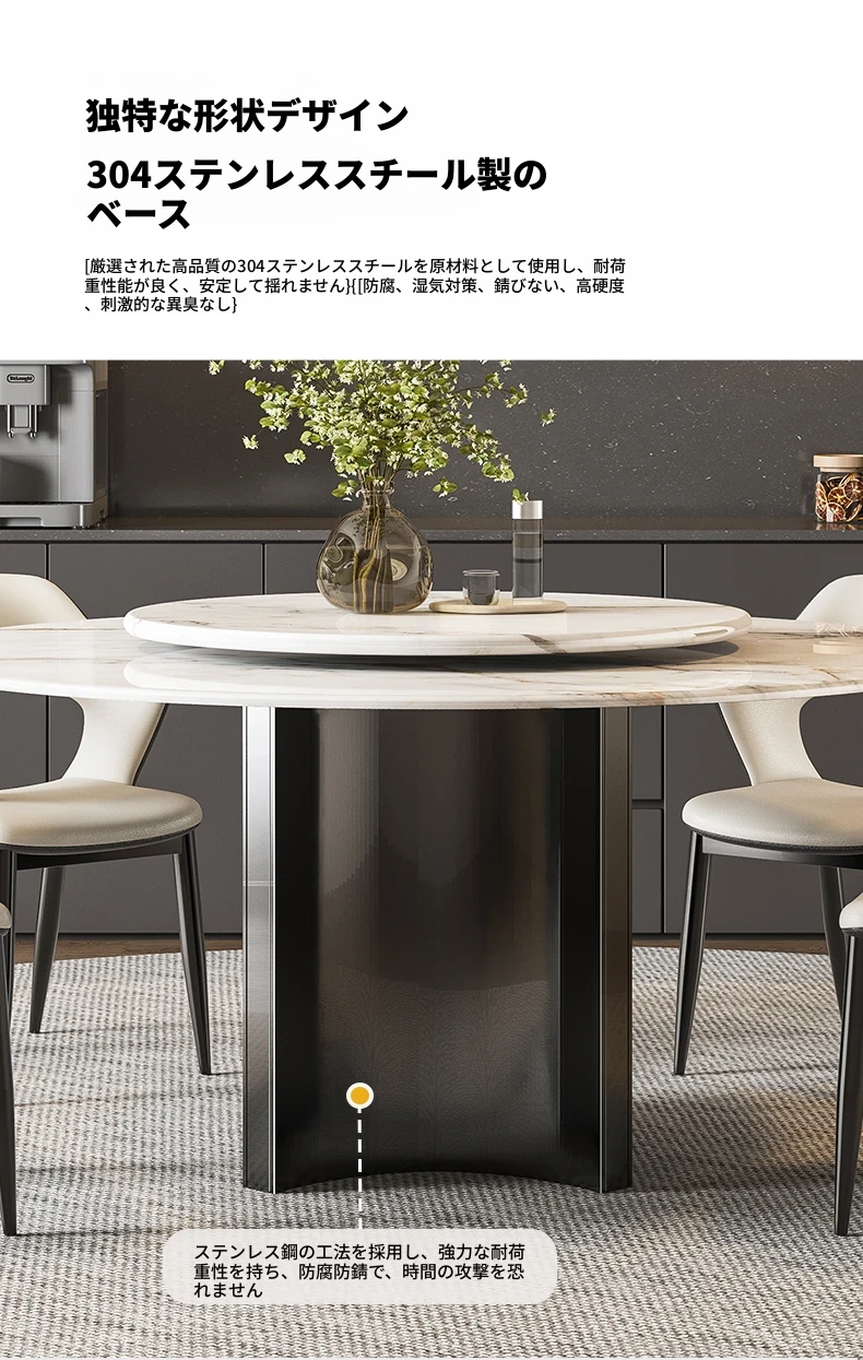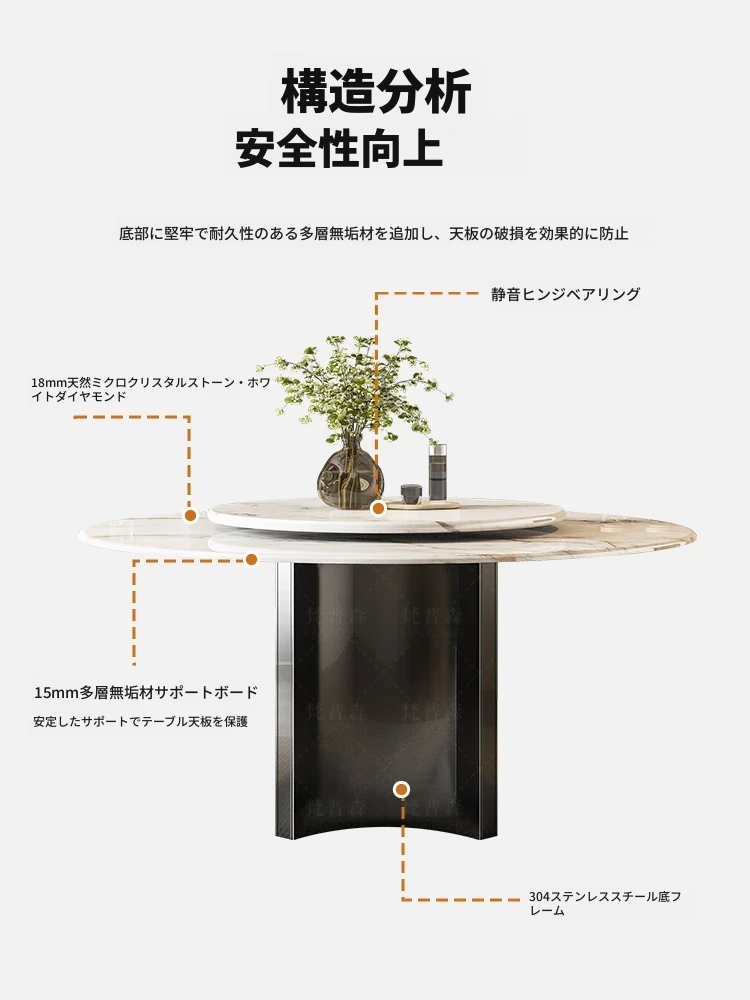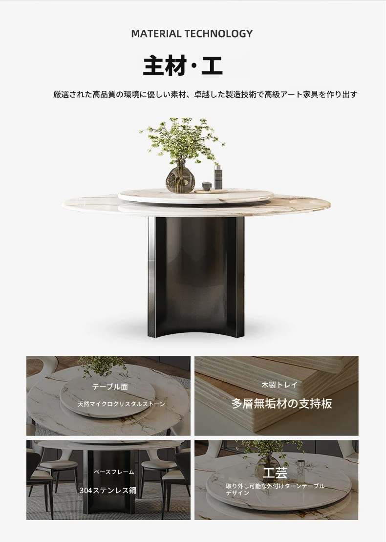 【アップグレード版複合全托】天然微晶石円形ダイニングテーブル