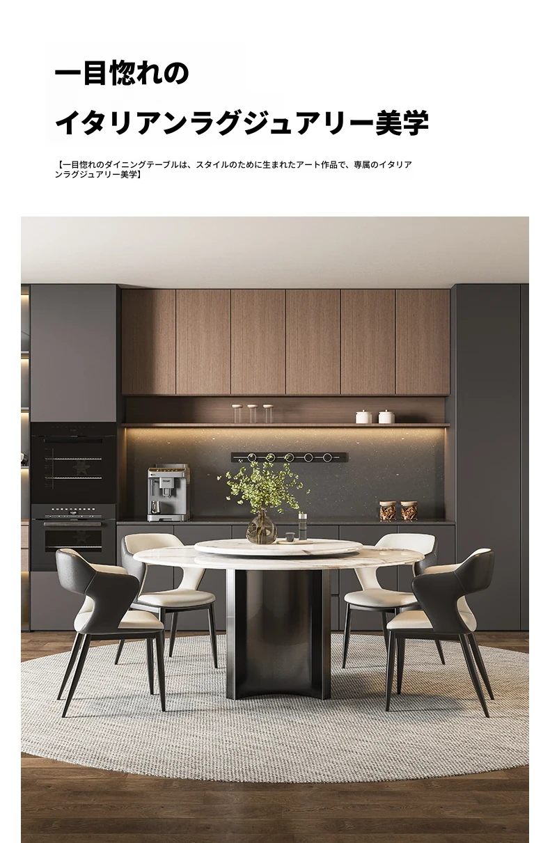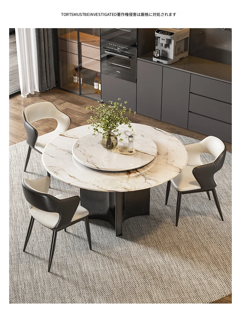 高級感あふれる大理石の円形テーブル!天然微晶石を使用したイタリアンスタイルのライトラグジュアリーな超晶石ダイニングテーブル。小型住宅にもぴったりな回転式デザインで、食事のひとときを特別に演出します。