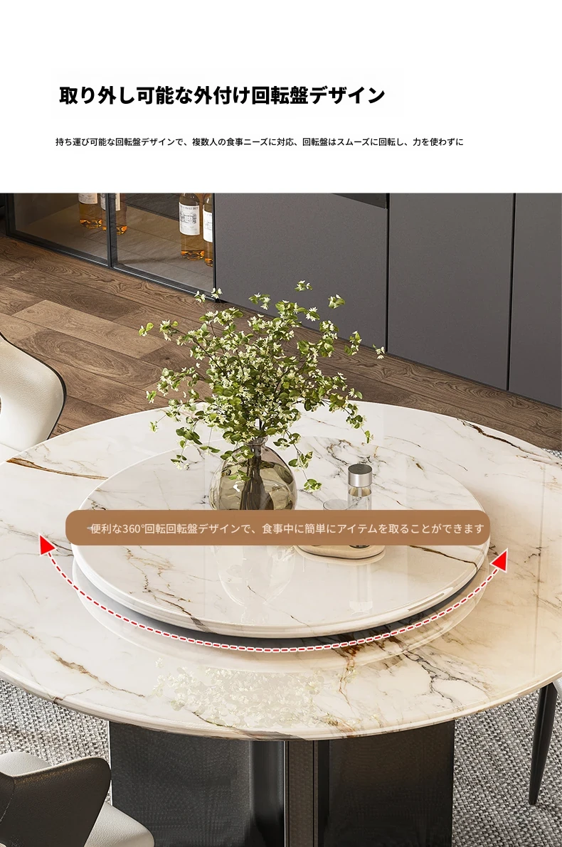 【アップグレード版複合全托】抗菌岩板ダイニングテーブル+回転台